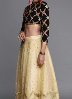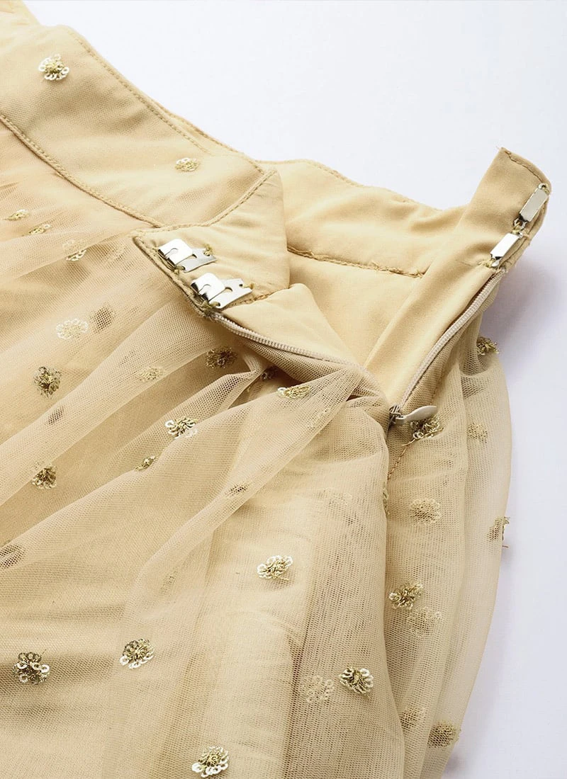 High Neck Beige Embroidered Knife Pleat Lehenga Festive Wear