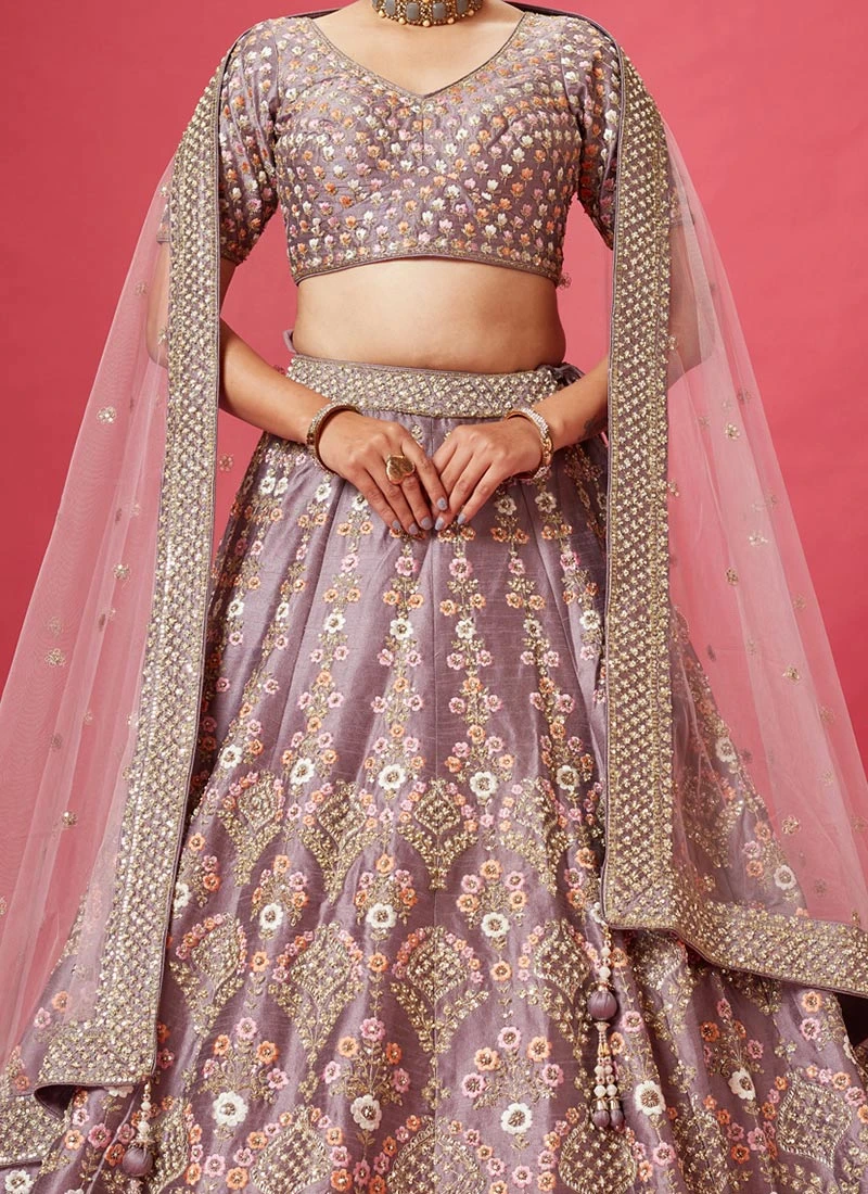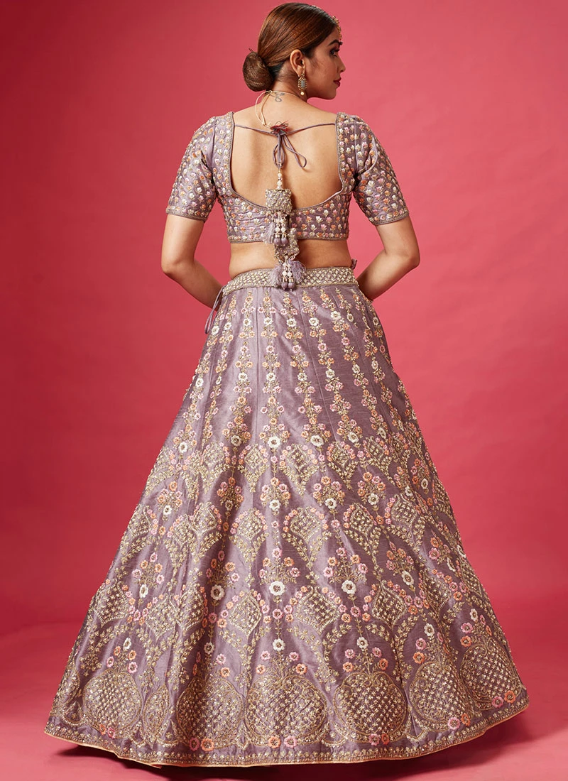 Comes with semi -stitched lehenga, un stitched choli and dupatta fabric. To have it stitched, please select the custom tailoring options. Lehenga with elaborate patterns and colors are used for photo-shoot. Color and pattern of the lehenga might not be as shown in the image.