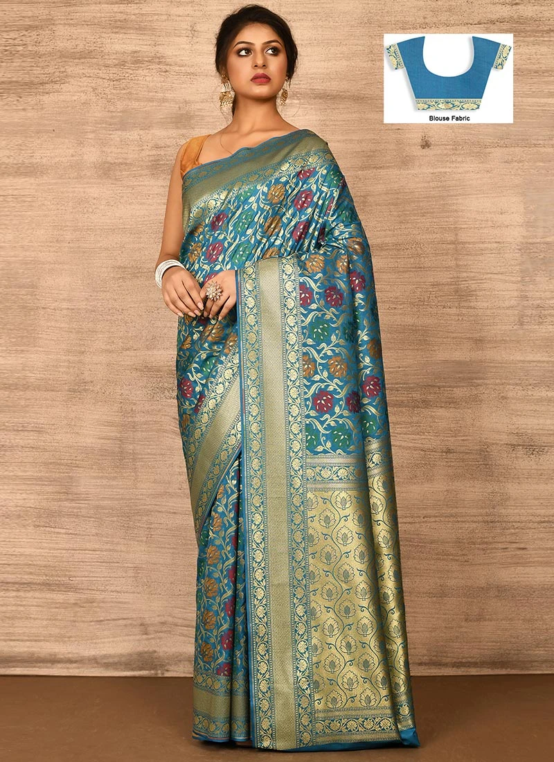 Light Blue Banarasi Katan Zari Weaving Saree Festive Wear