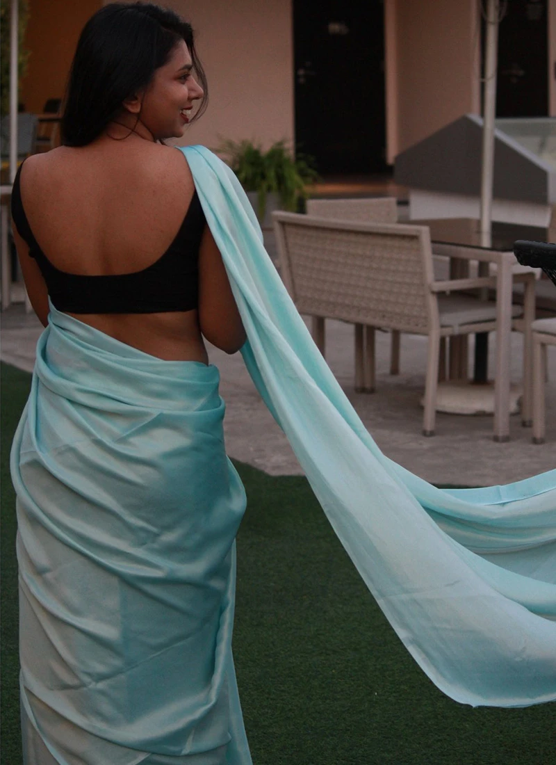 In conclusion the Light Blue Satin Blend Saree is a timeless and elegant outfit that captures the essence of Indian tradition and craftsmanship. Its exquisite design luxurious fabric and graceful drape make it a favourite choice among women who appreciate the beauty of traditional attire. Whether worn at weddings parties or festive occasions this saree is sure to make a statement and leave a lasting impression showcasing the wearers style and sophistication.