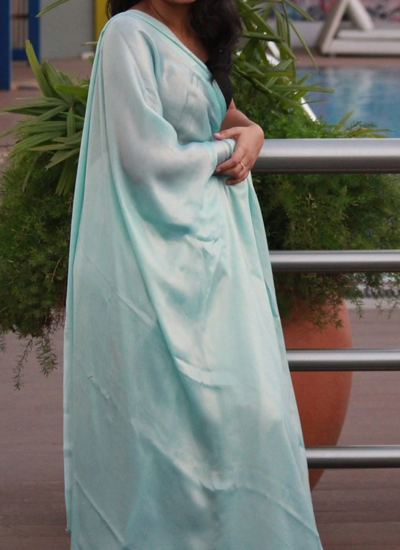 The smooth and lustrous texture of the satin fabric gives the saree a rich look and feel. Satin is known for its softness and subtle sheen making it a favourite among fashion enthusiasts. The lightweight nature of the fabric ensures that the saree drapes beautifully and is comfortable to wear allowing the wearer to move with ease and confidence.