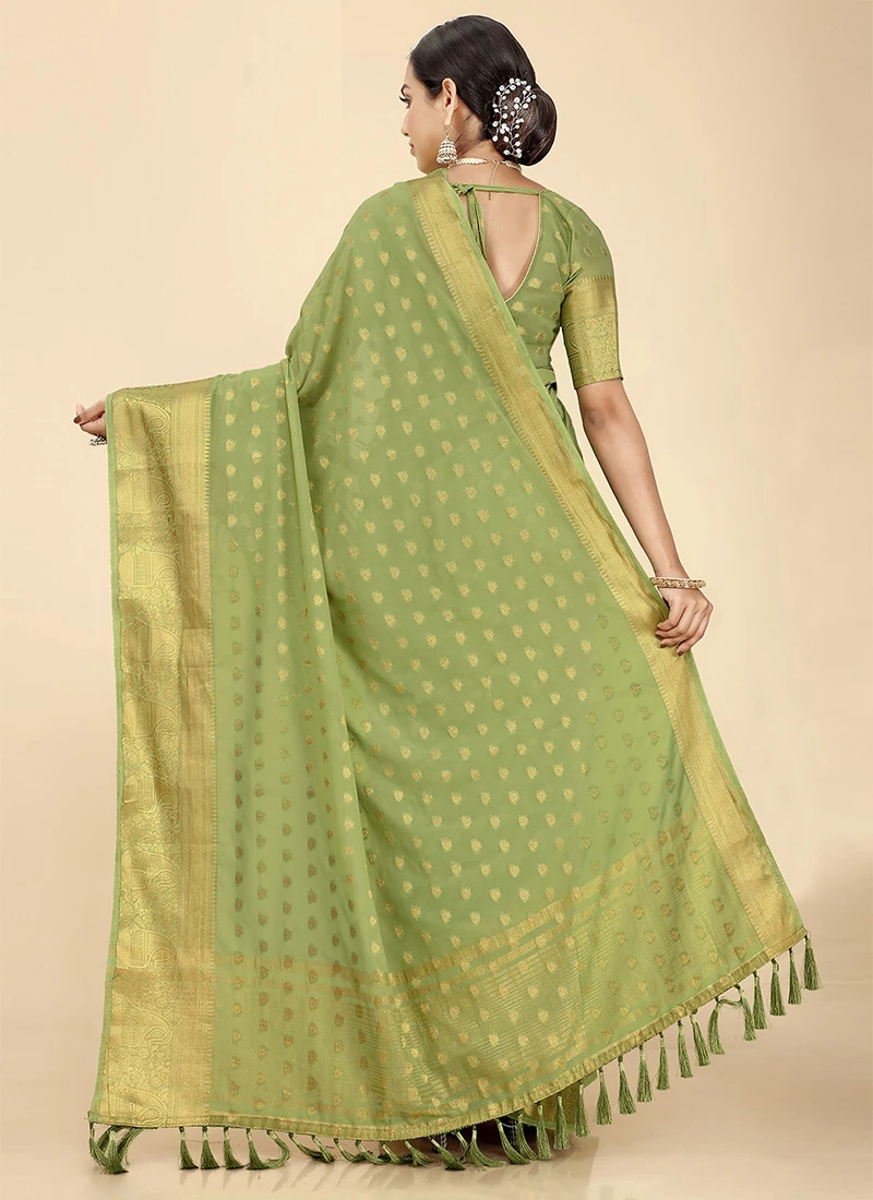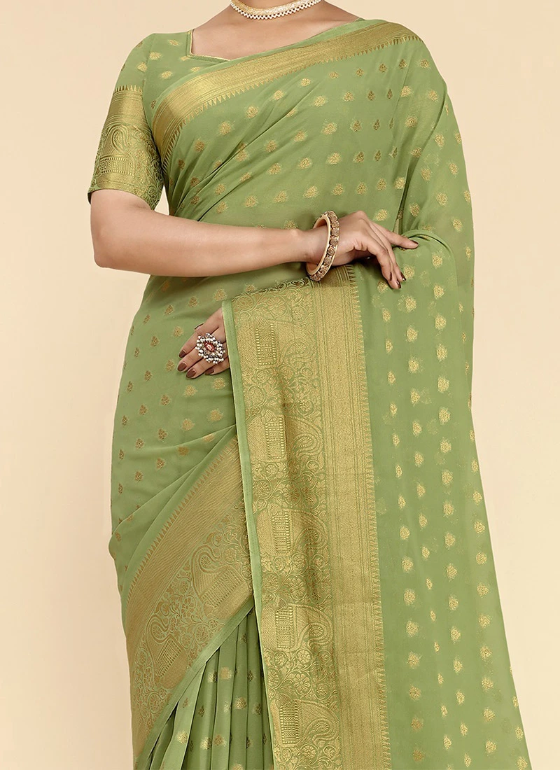 Light Green Color Georgette Silk Weaving Saree Festive Wear