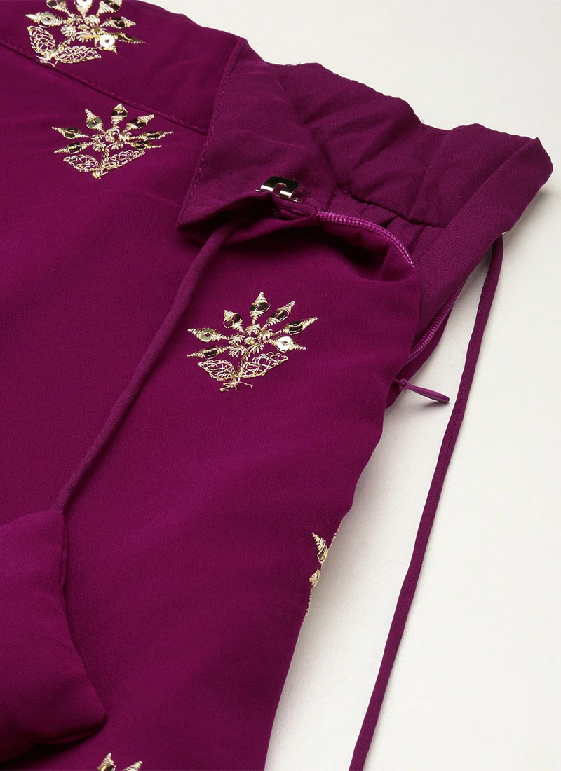 Magenta Georgette Embroidered Lehenga Set Wedding Wear