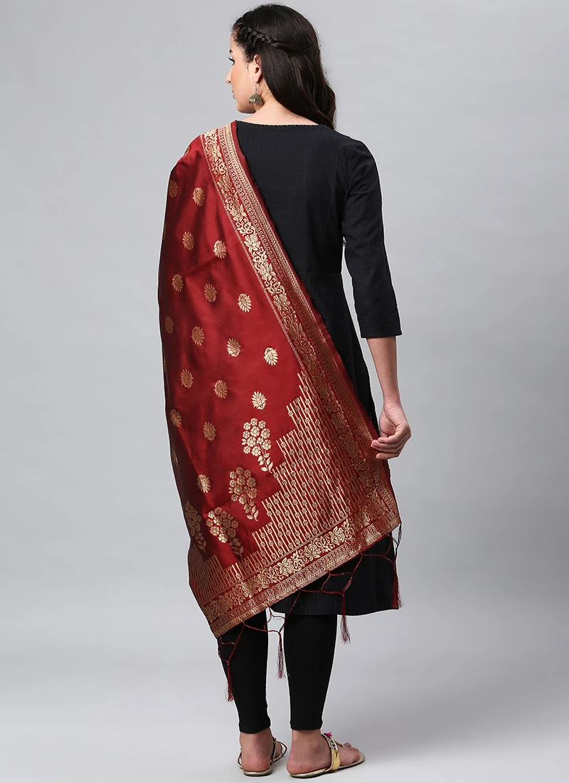 Maroon Benarasi Silk Jacquard Woven Dupatta Festive Wear