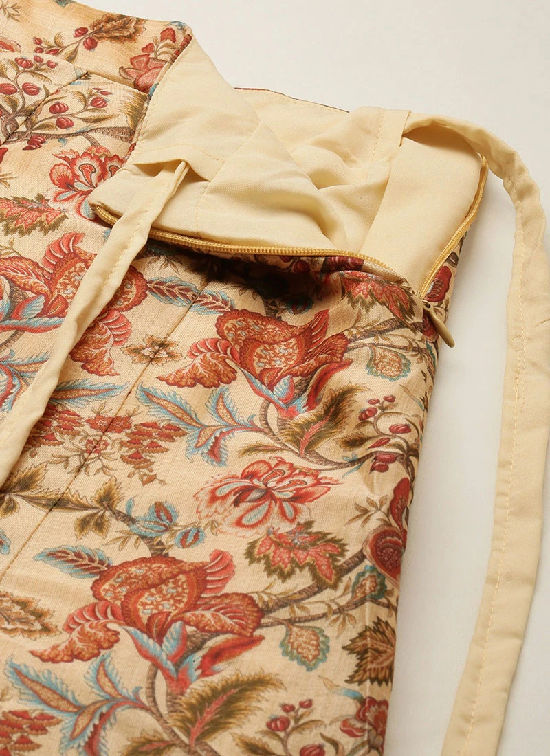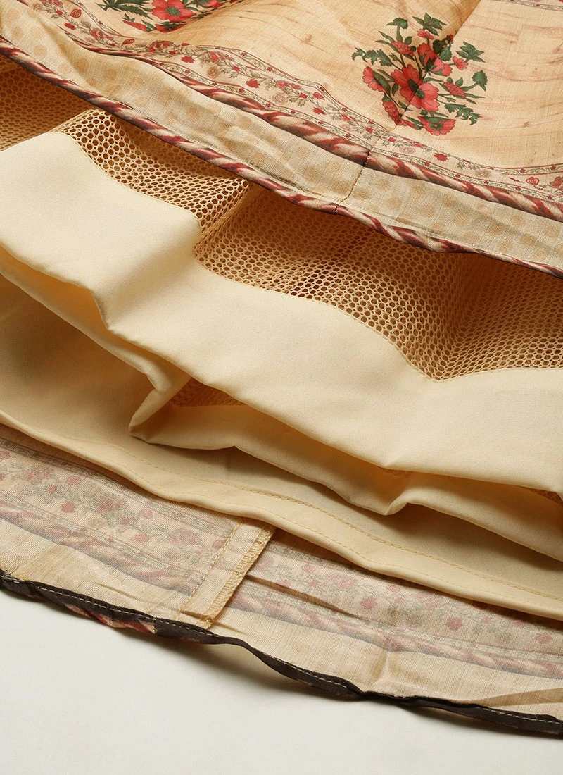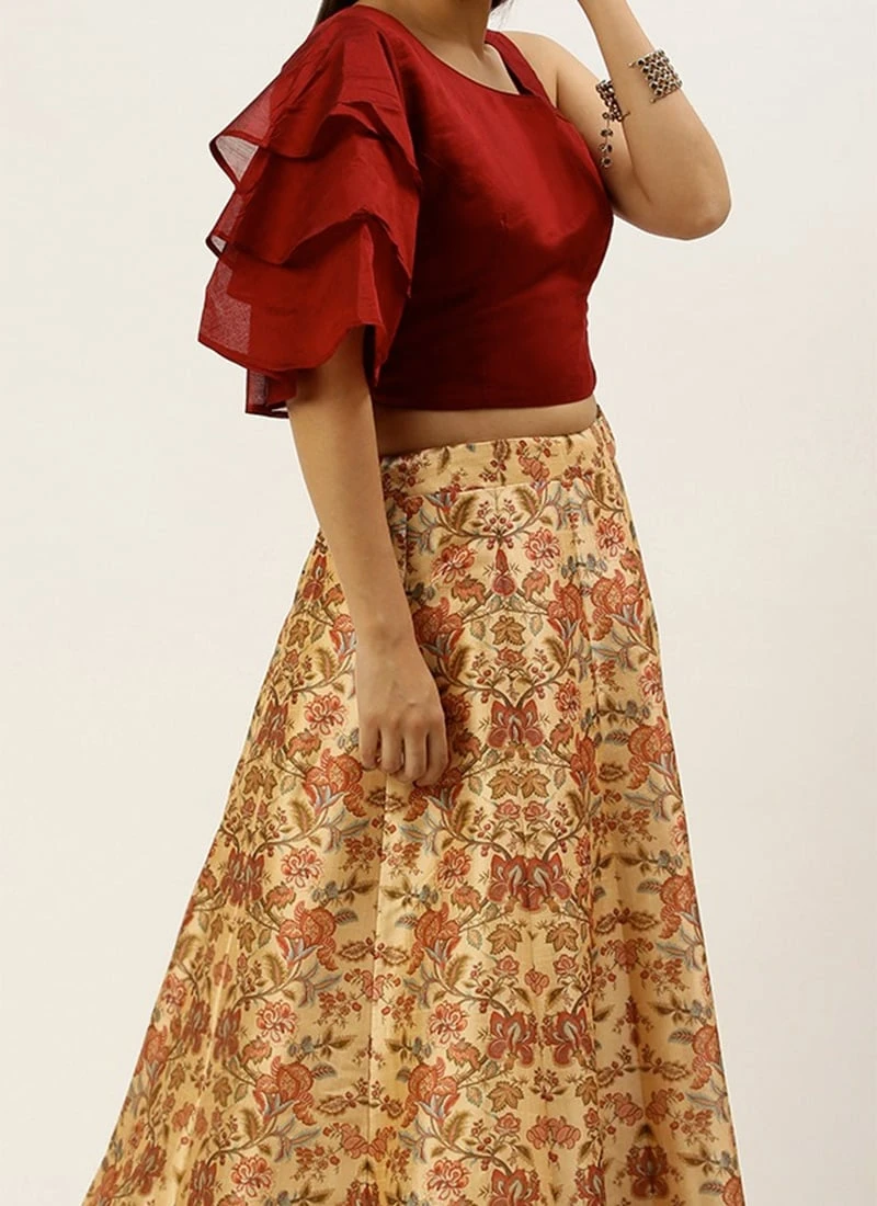 Maroon Blouse N Beige Digital Printed Kali Lehenga Festive Wear