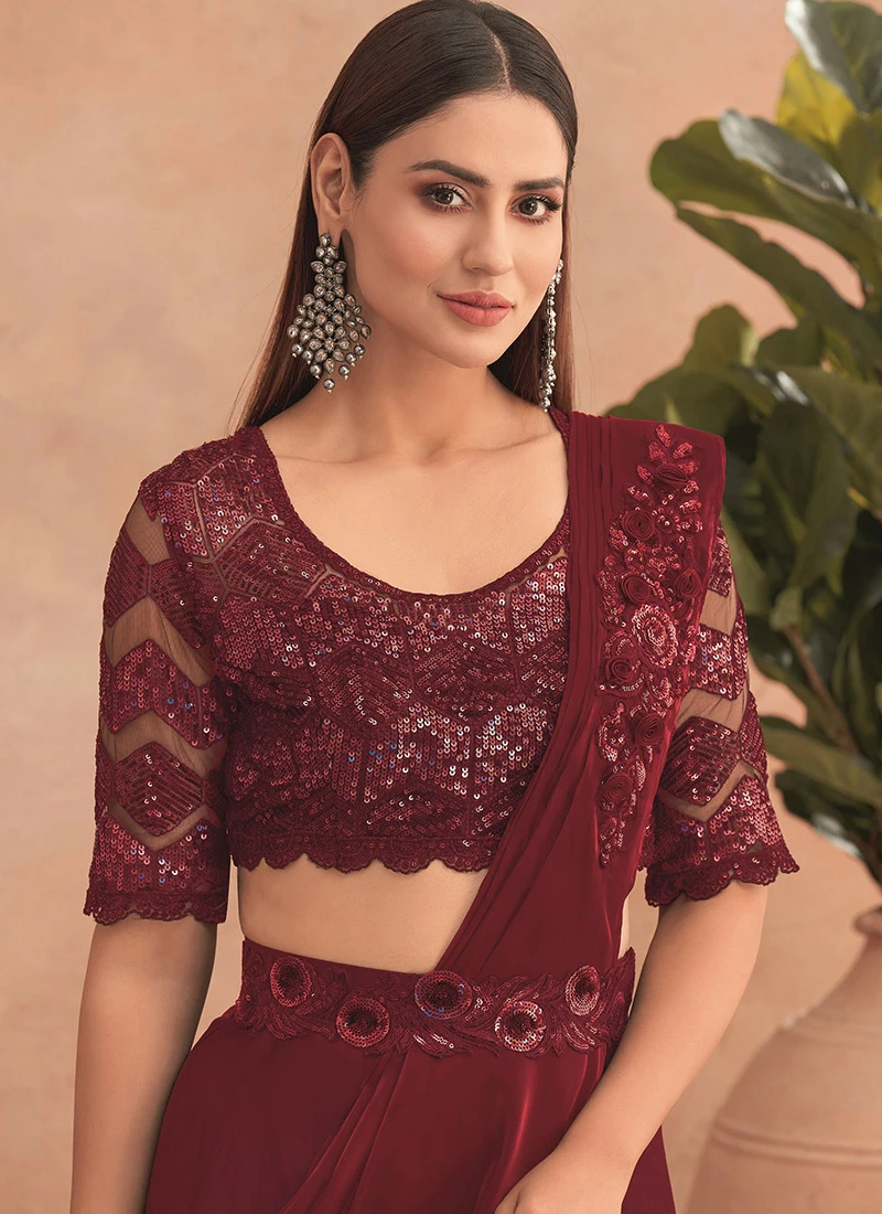 Comes with unstitched blouse fabric. To have the blouse stitched, please select the custom tailoring options. Blouses with elaborate patterns and colors are used for photo-shoot. Color and pattern of the blouse might not be as shown in the image.