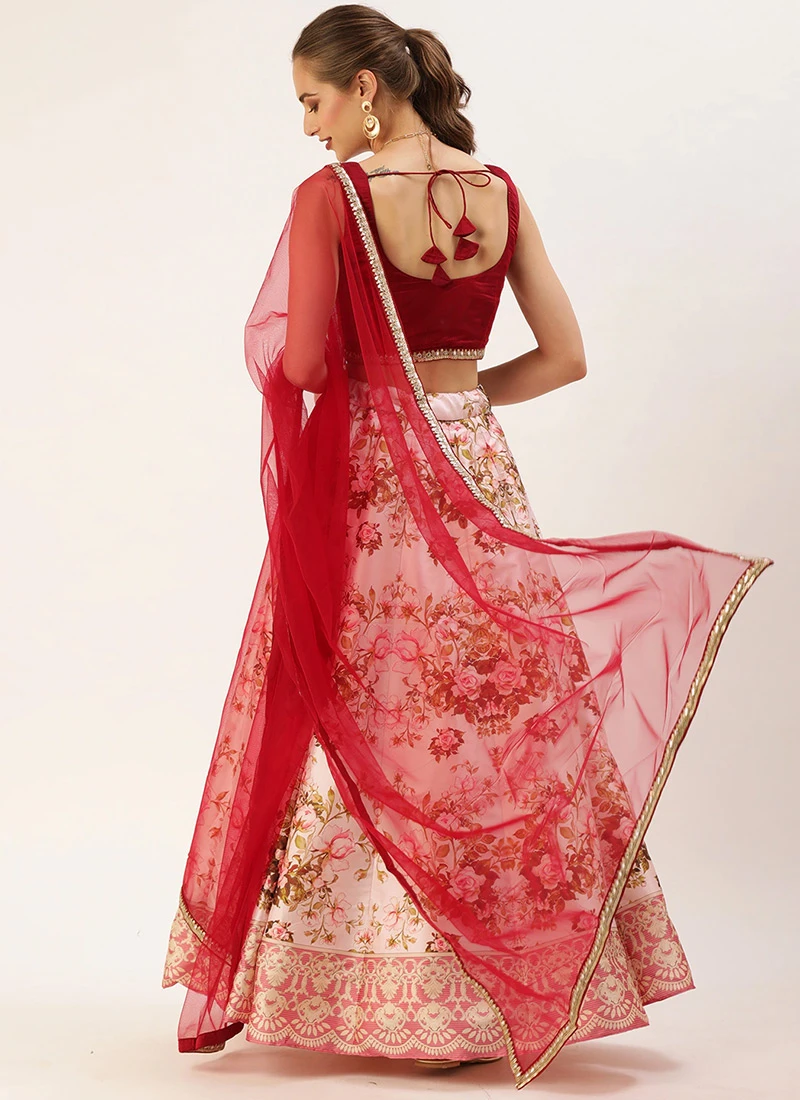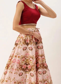 Maroon N Pink Printed Kali Lehenga Festive Wear