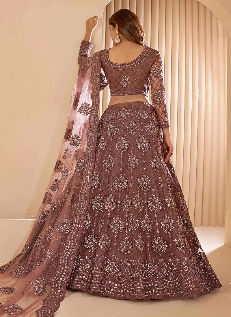 Mauve Net Embroidered N Stones Umbrella Lehenga Wedding Wear