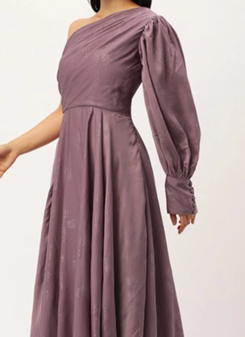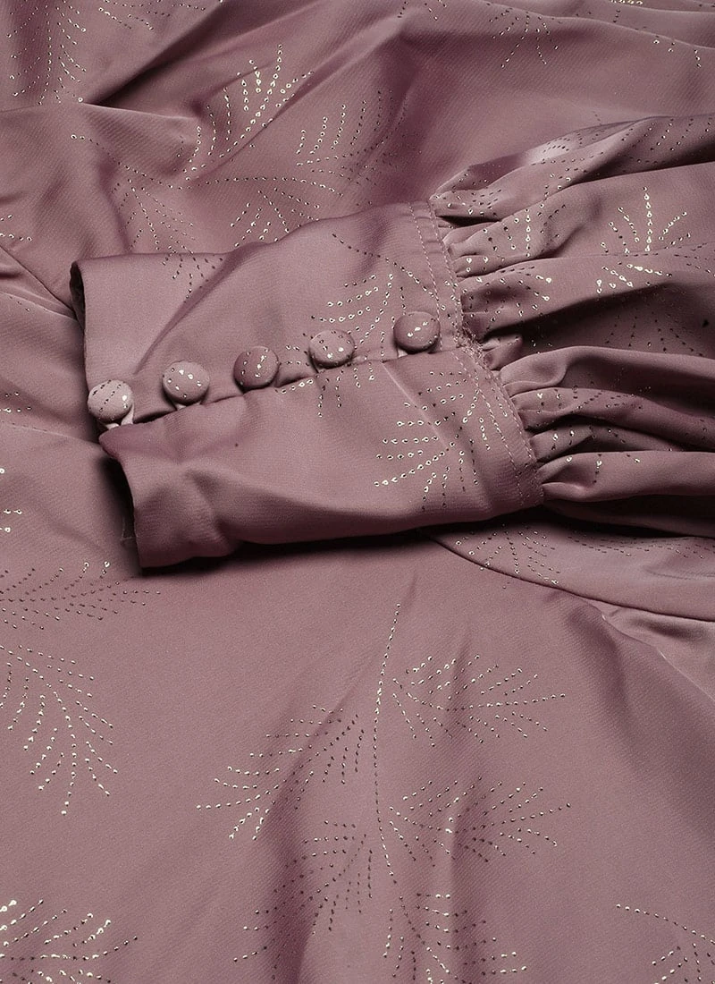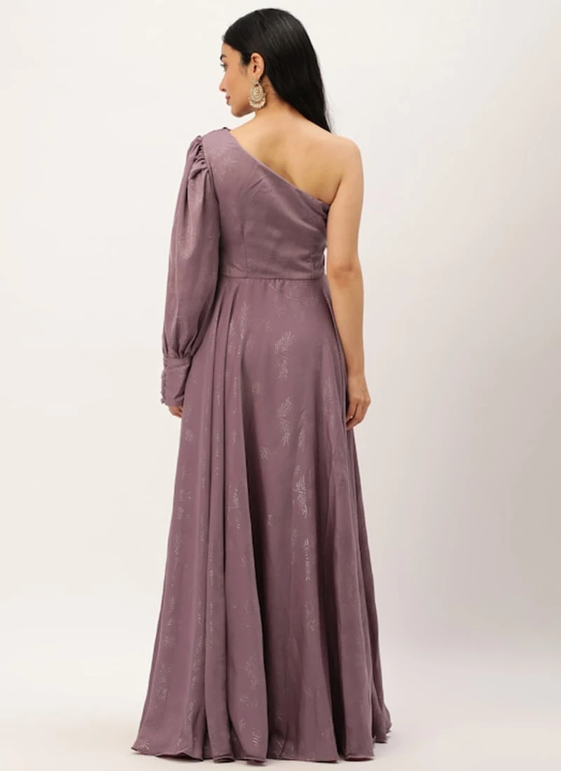 Mauve Satin Blend Foil Printed Gown Party Wear