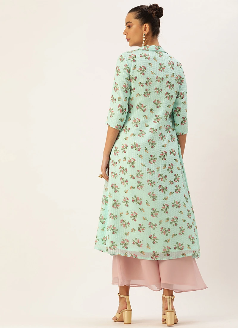 Mint Green Georgette Digital Printed Jumpsuit Festive Wear After Six Wear