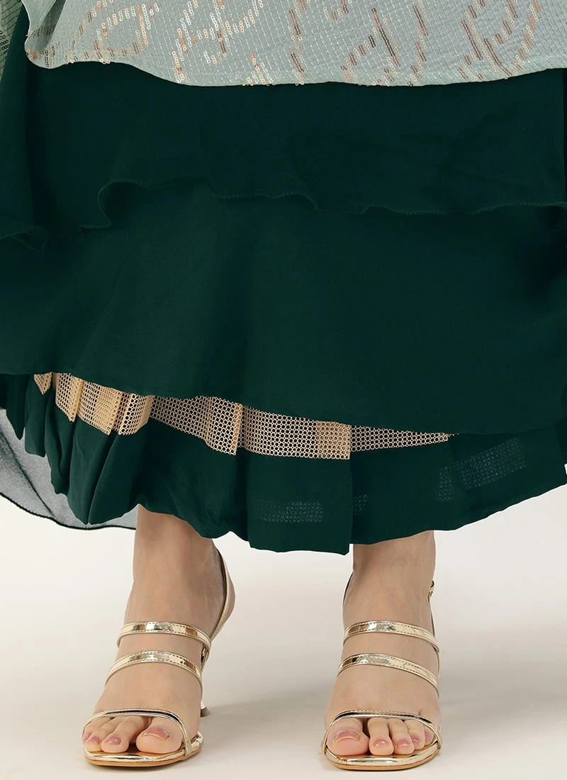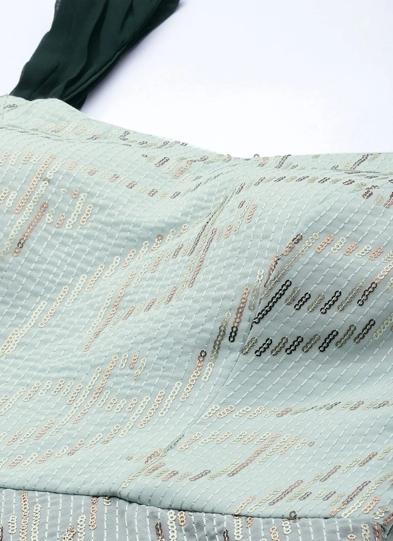 Mint Green Georgette Sequins Embroidered Strap Gown Festive Wear