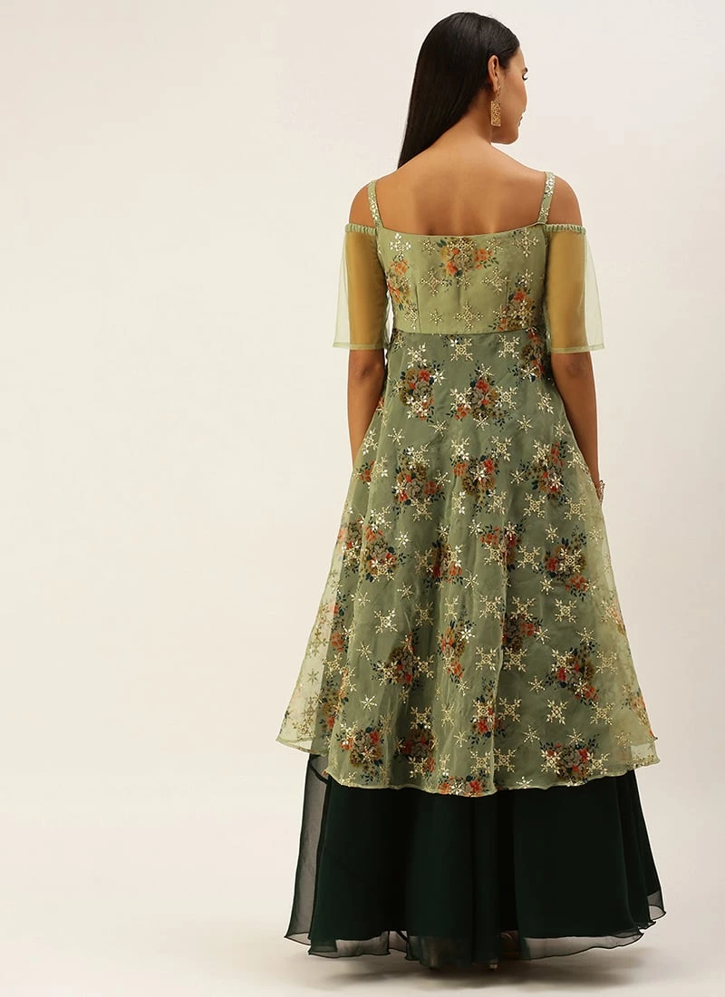Mint Green Organza N Layered Style Gown Wedding Wear
