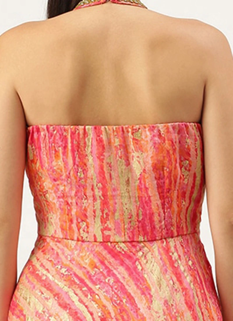 Multicolored Art Silk Halter Neck Gown After Six Wear