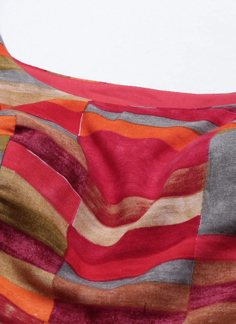 Multicolored N Burgundy Georgette Gathers Dress After Six Wear