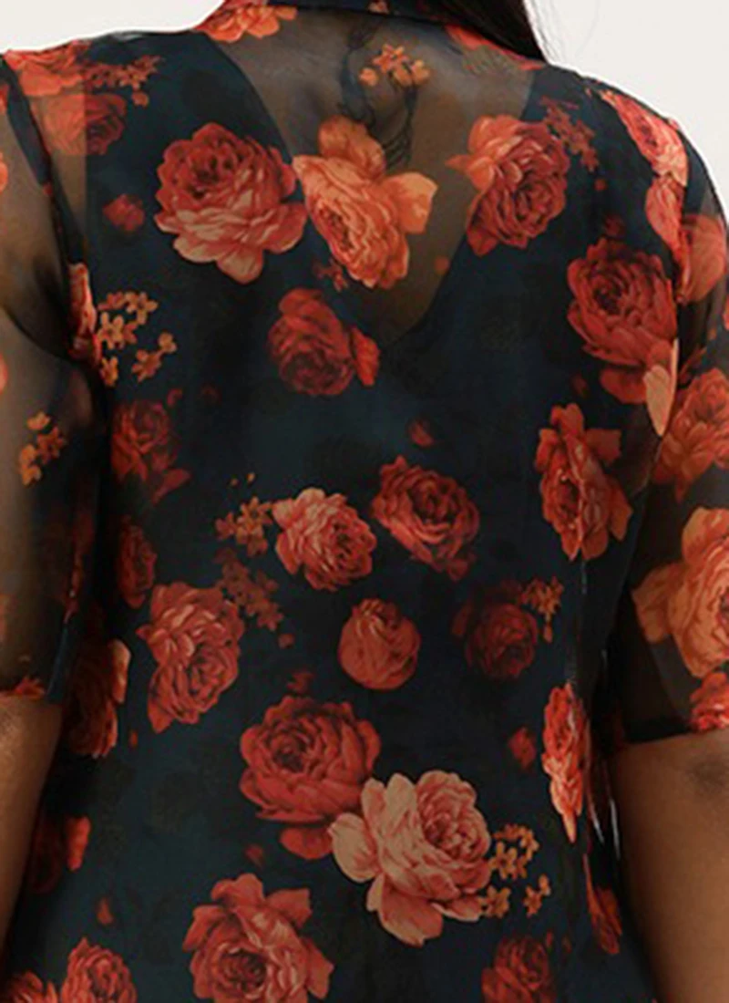 Multicolored Organza Jacket N Teal Blue Dress Festive Wear