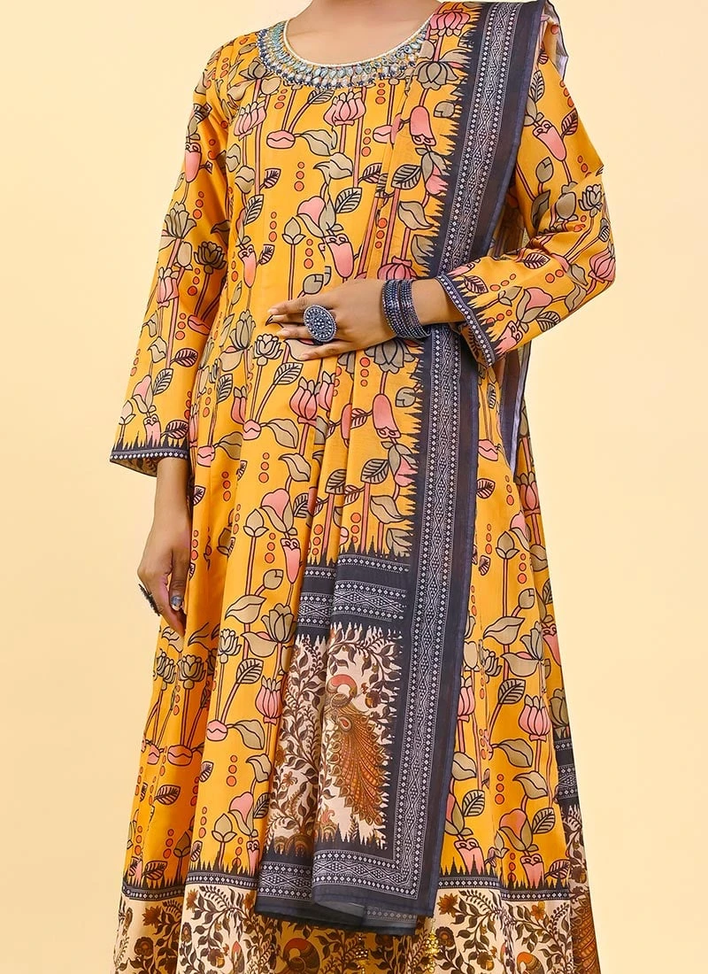 The rich golden hue of mustard is the centrepiece of this collection. Mustard is a colour that resonates with warmth optimism and creativity. It complements a wide range of skin tones and can be worn yearround making it a versatile choice for various occasions. The mustard base serves as the perfect canvas for the intricate prints and patterns that adorn these dresses and gowns. These prints often incorporate complementary colours enhancing the visual appeal and making a bold fashion statement.