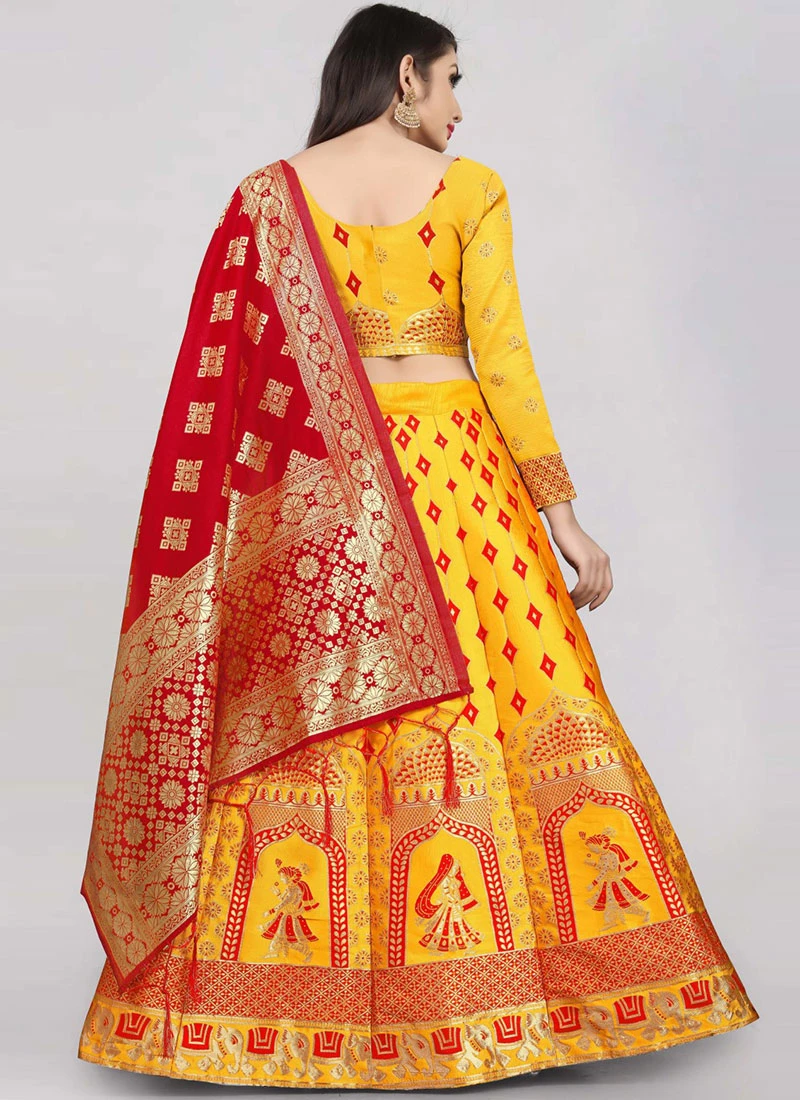 Mustard Banarasi Silk Brocade Work A Line Lehenga Choli Festive Wear