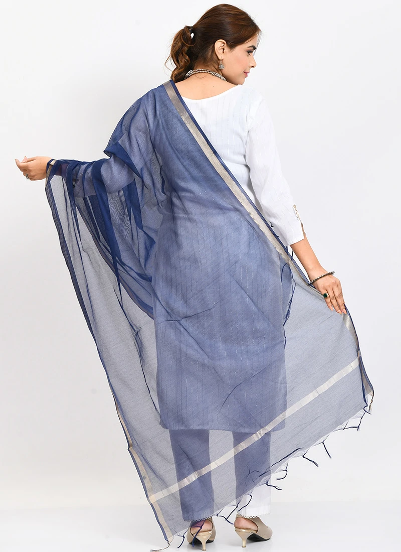 Navy Blue Chanderi Cotton Dupatta Festive Wear