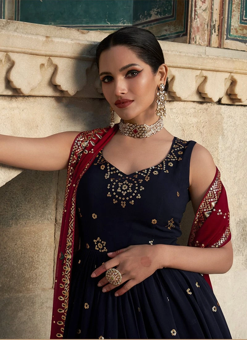 Mint Green Georgette Sequins Embroidered Strap Gown Festive Wear