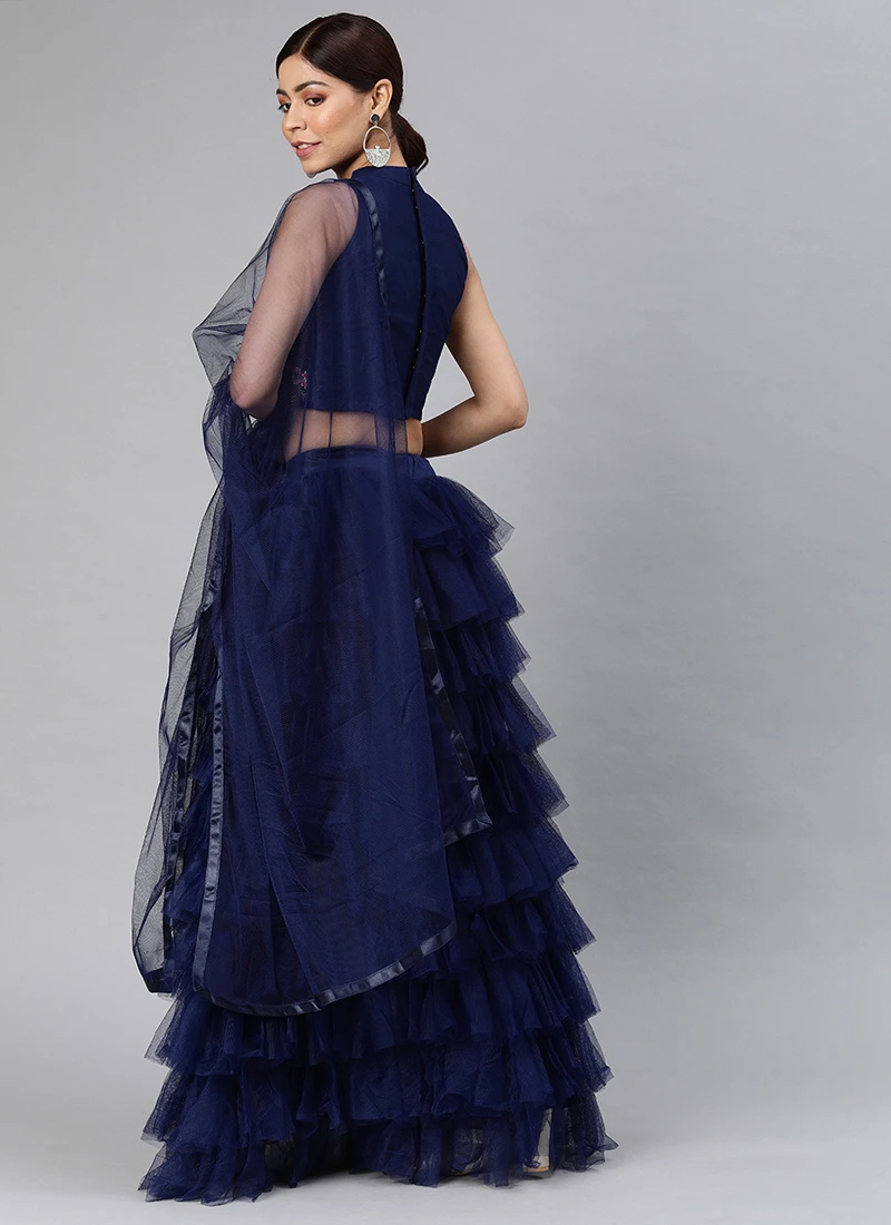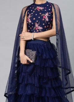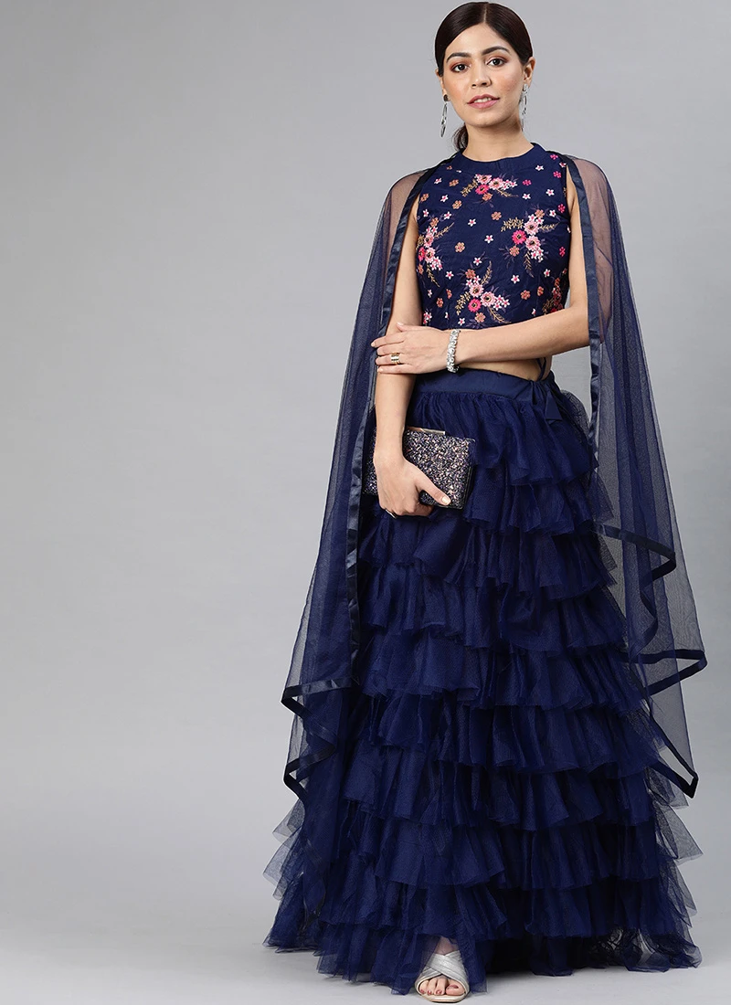 When it comes to epitomizing timeless elegance and traditional charm few ensembles can rival the Navy Blue Net Embroidered ALine Lehenga. This exquisite piece of Indian ethnic wear seamlessly marries the classic with the contemporary making it a musthave addition to any womans wardrobe. Crafted with meticulous attention to detail and an unwavering commitment to quality this lehenga embodies grace sophistication and cultural richness.