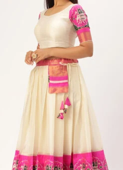 Crafted with the utmost attention to detail this lehenga is made from highquality art silk which exudes a luxurious sheen and feels incredibly soft against the skin. The offwhite color palette adds a touch of sophistication and versatility making it suitable for various festive and celebratory events.