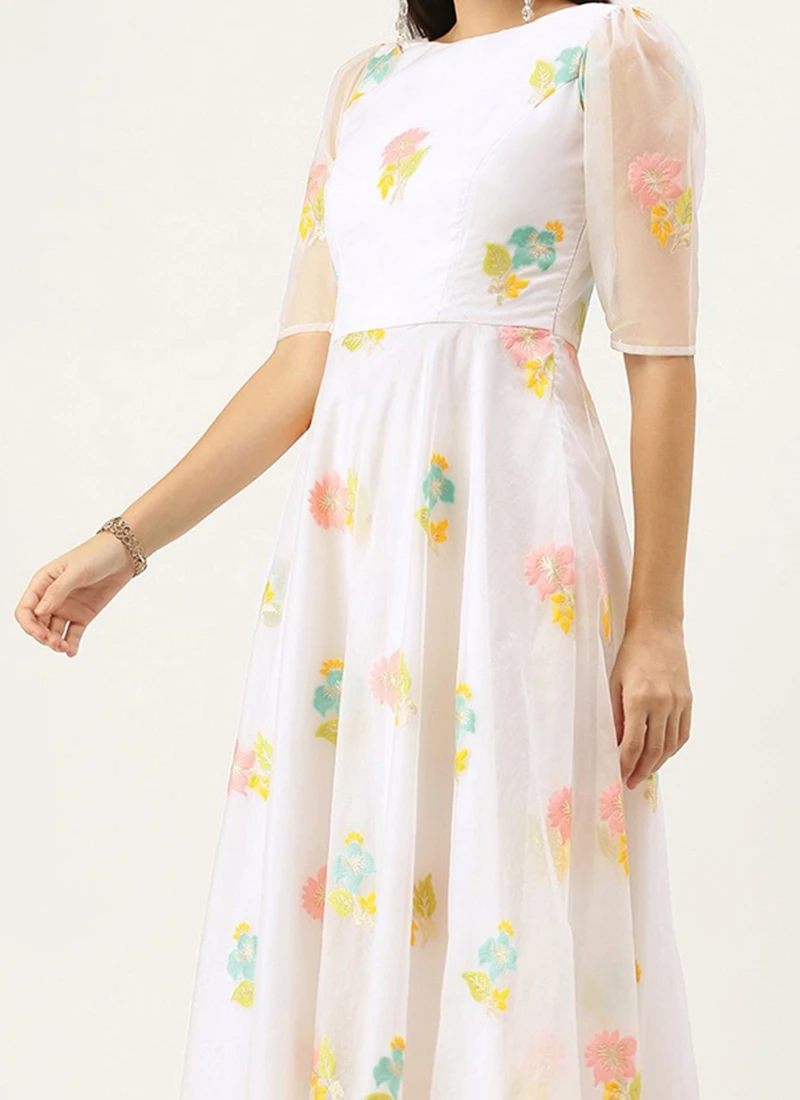 Off White Organza Ankle Length Dress After Six Wear