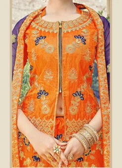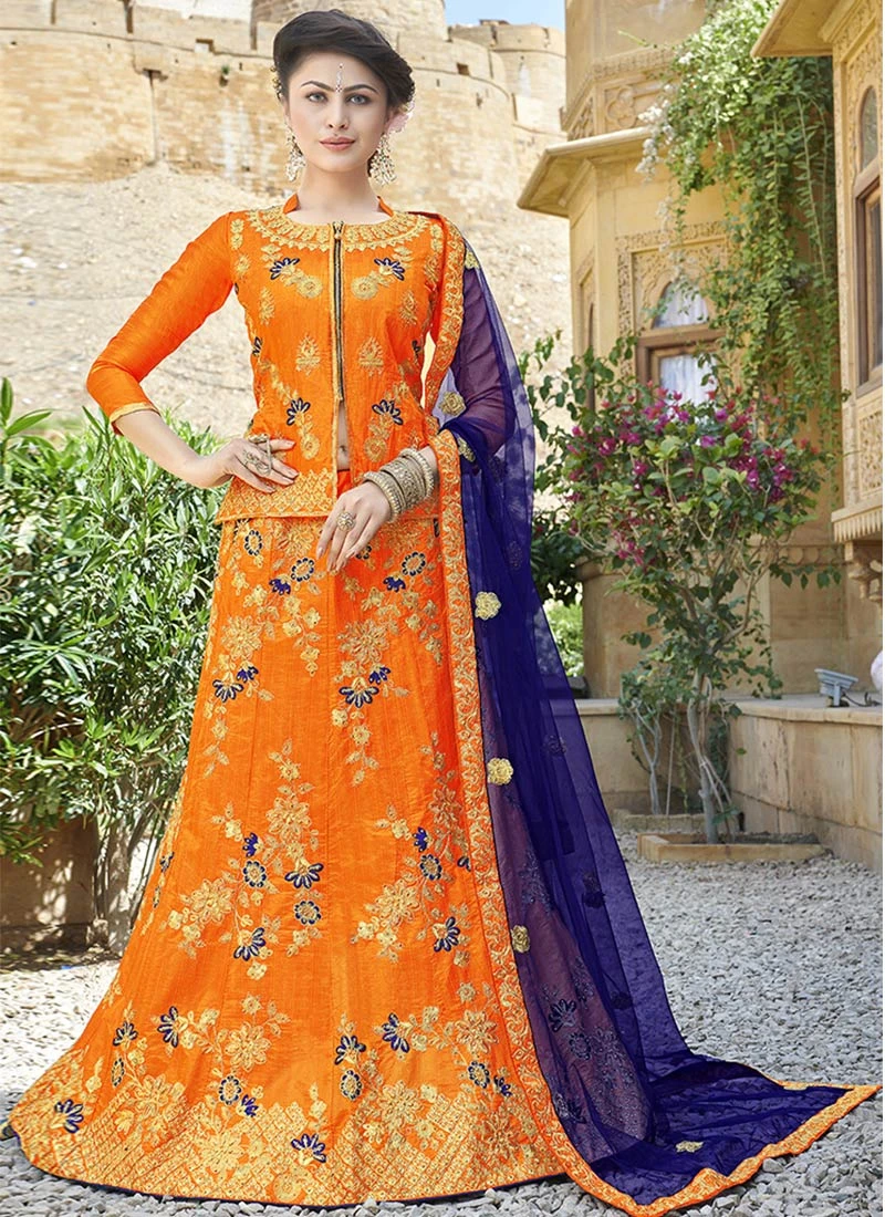 Orange Art Silk Embroidered A Line Lehenga Wedding Wear