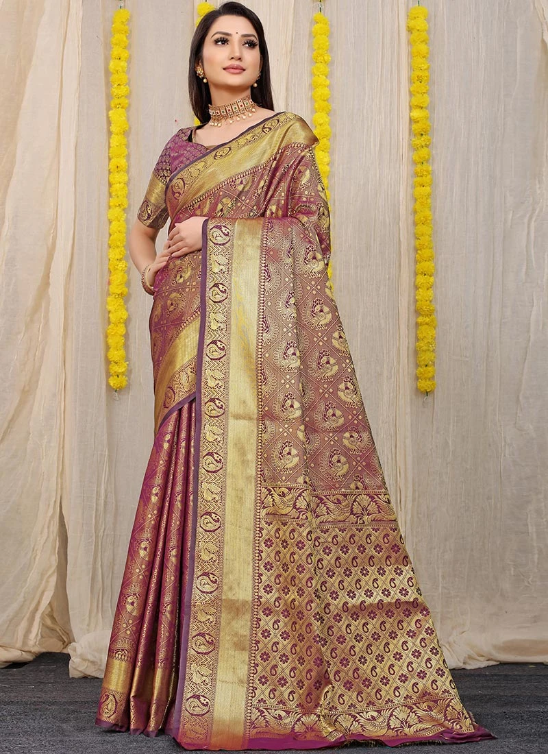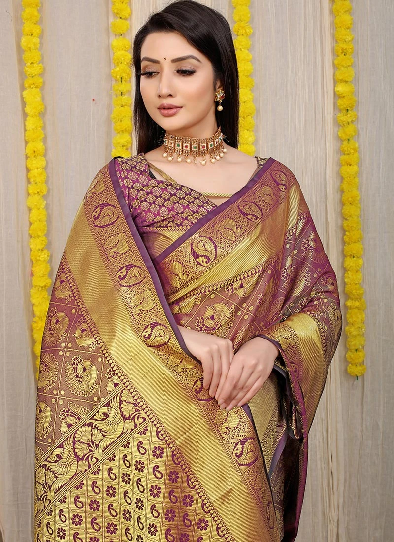 Patola Silk Zari Weaving Purple Color Saree Festive Wear
