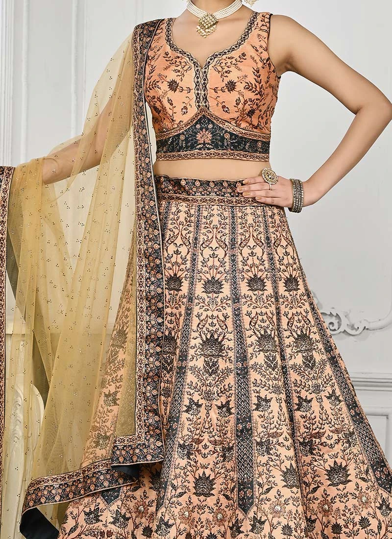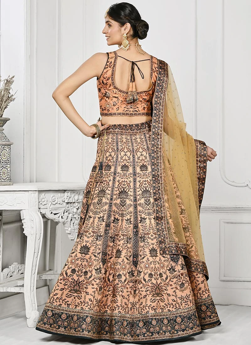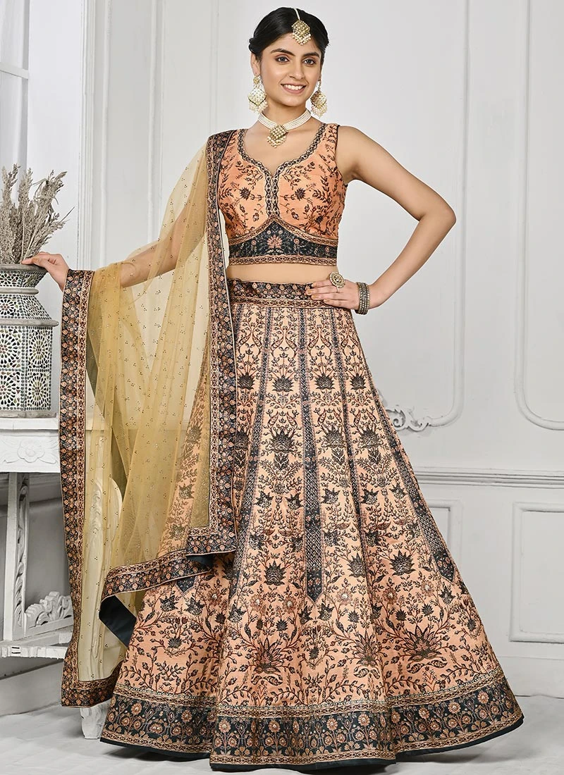 Peach Art Silk Digital Print A Line Lehenga Festive Wear