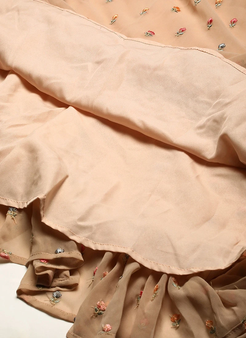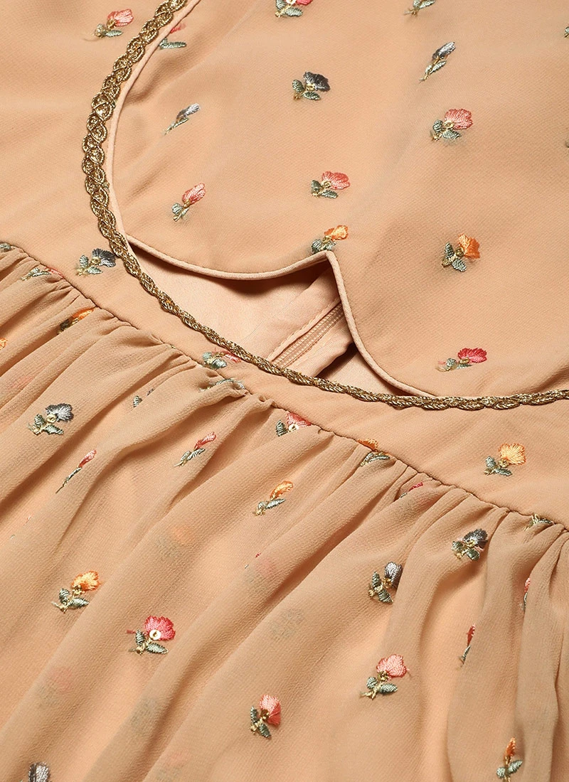 Peach Georgette Embroidered Maxi Dress Festive Wear