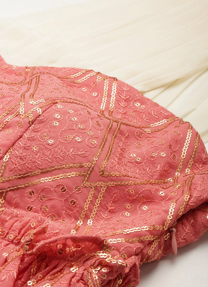 Peach N White Embroidered Tiered Maxi Dress Festive Wear