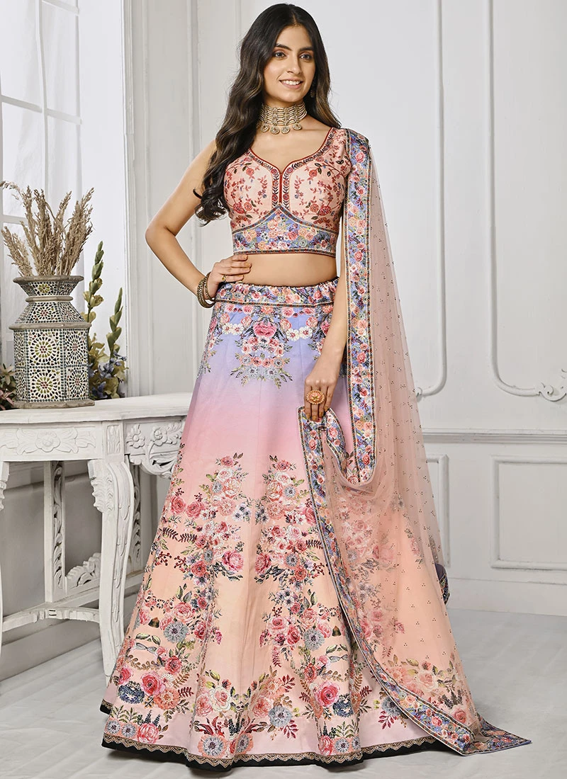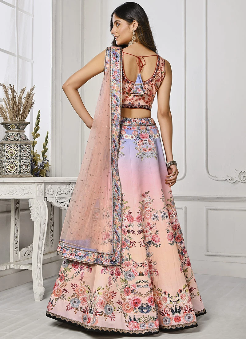 Pink Art Silk Digital Print A Line Lehenga Festive Wear