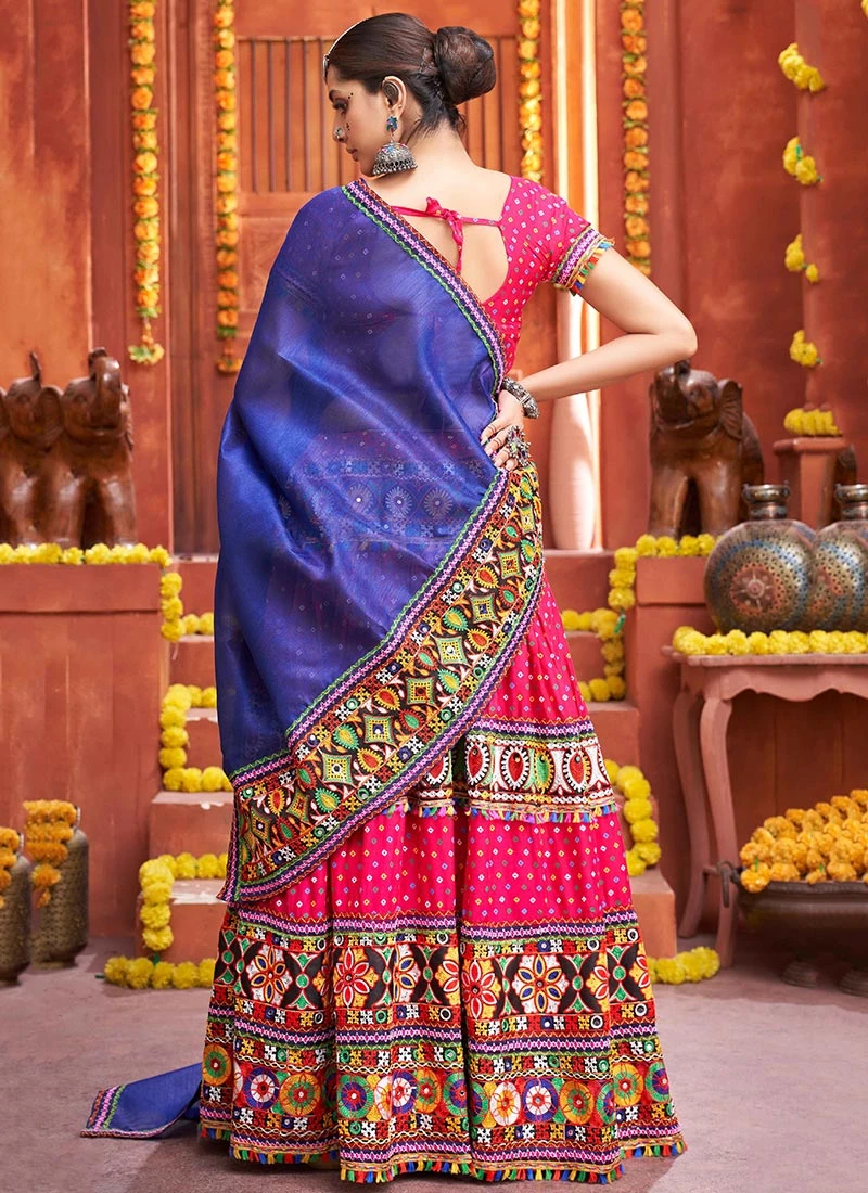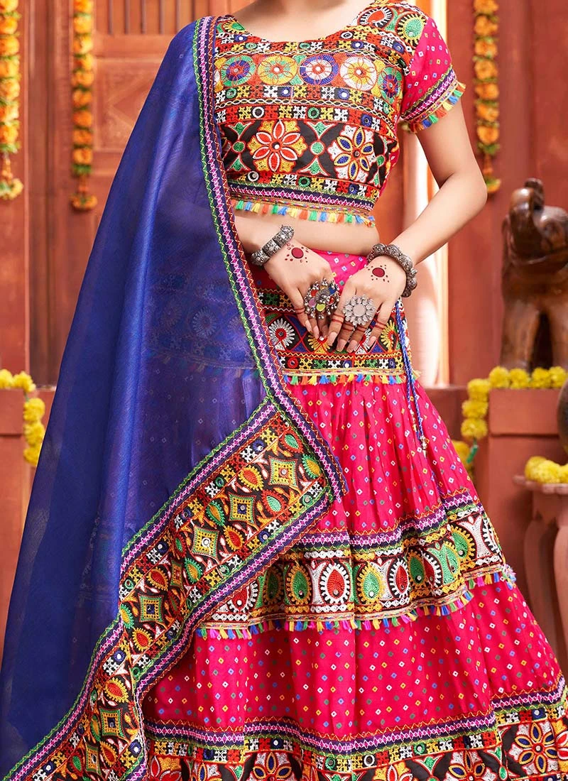 Pink Cotton Embroidery With Mirror Work Chaniya Choli Festive Wear