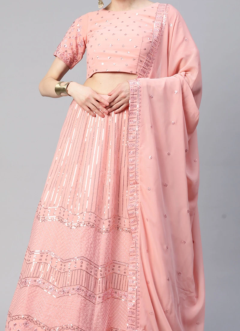 Pink Georgette Embroidered Sequins A Line Lehenga Party Wear