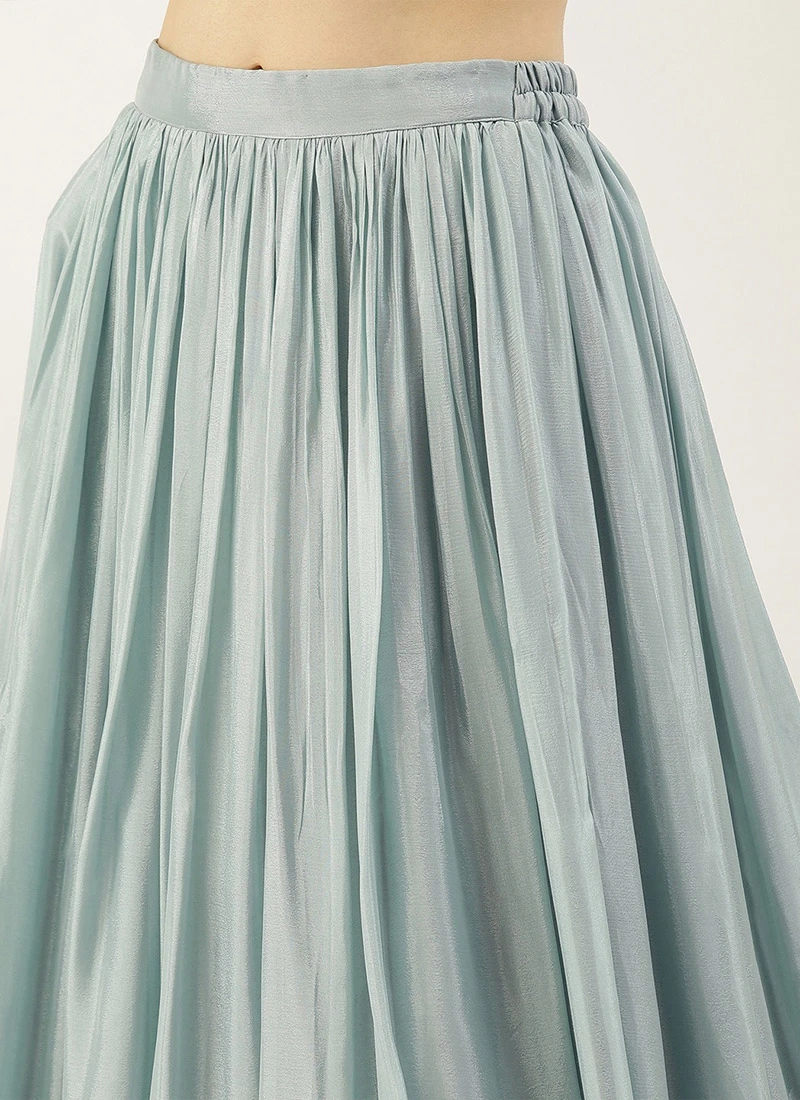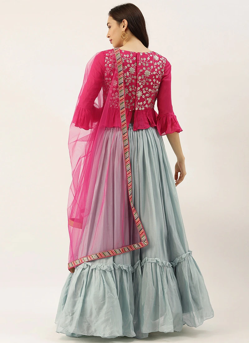 Pink N Blue Embroidered Tired Lehenga Set Festive Wear