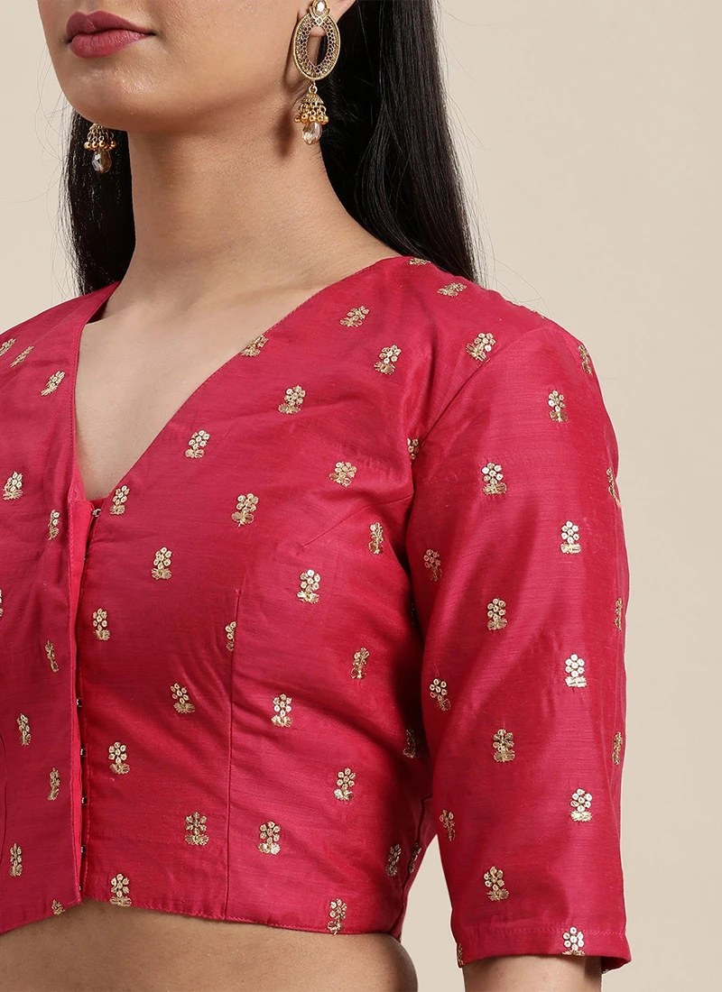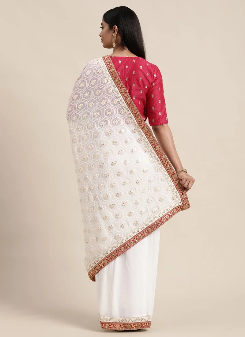 Pink N White Low V Neck Saree Festive Wear