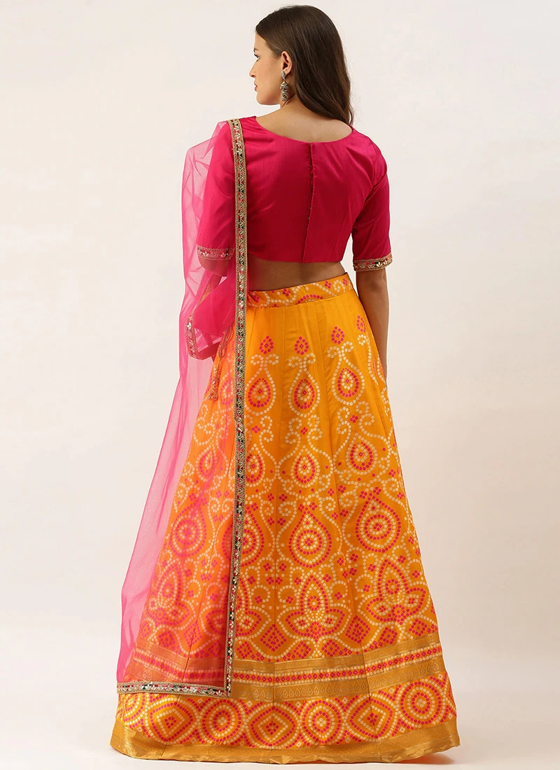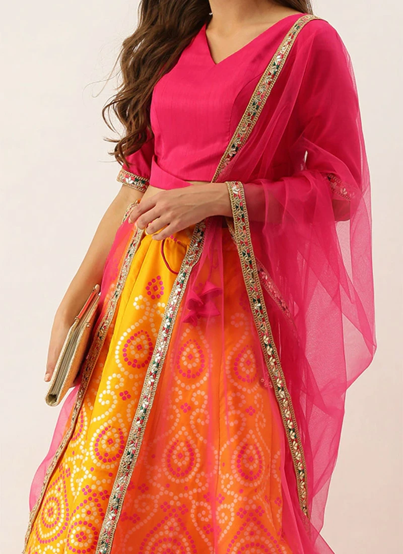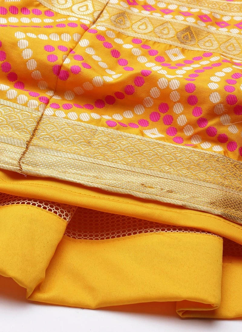 Pink N Yellow Art Silk Kali Lehenga Set Festive Wear