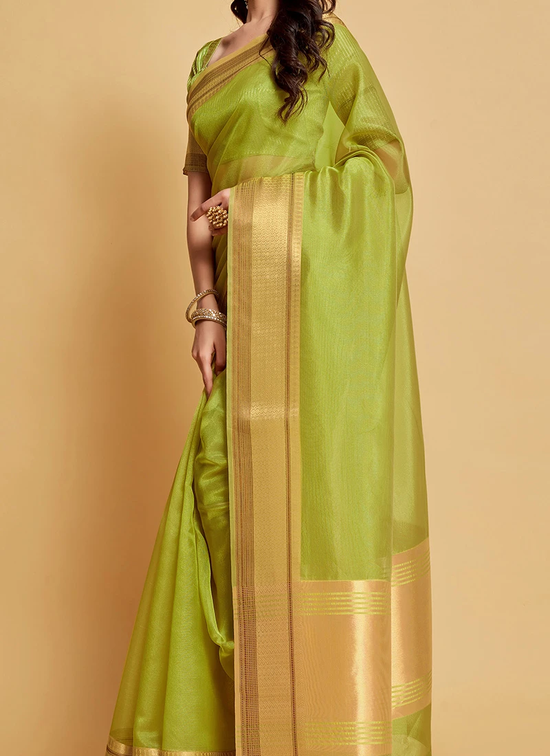 Pista Green Organza Weaving Work Saree Party Wear