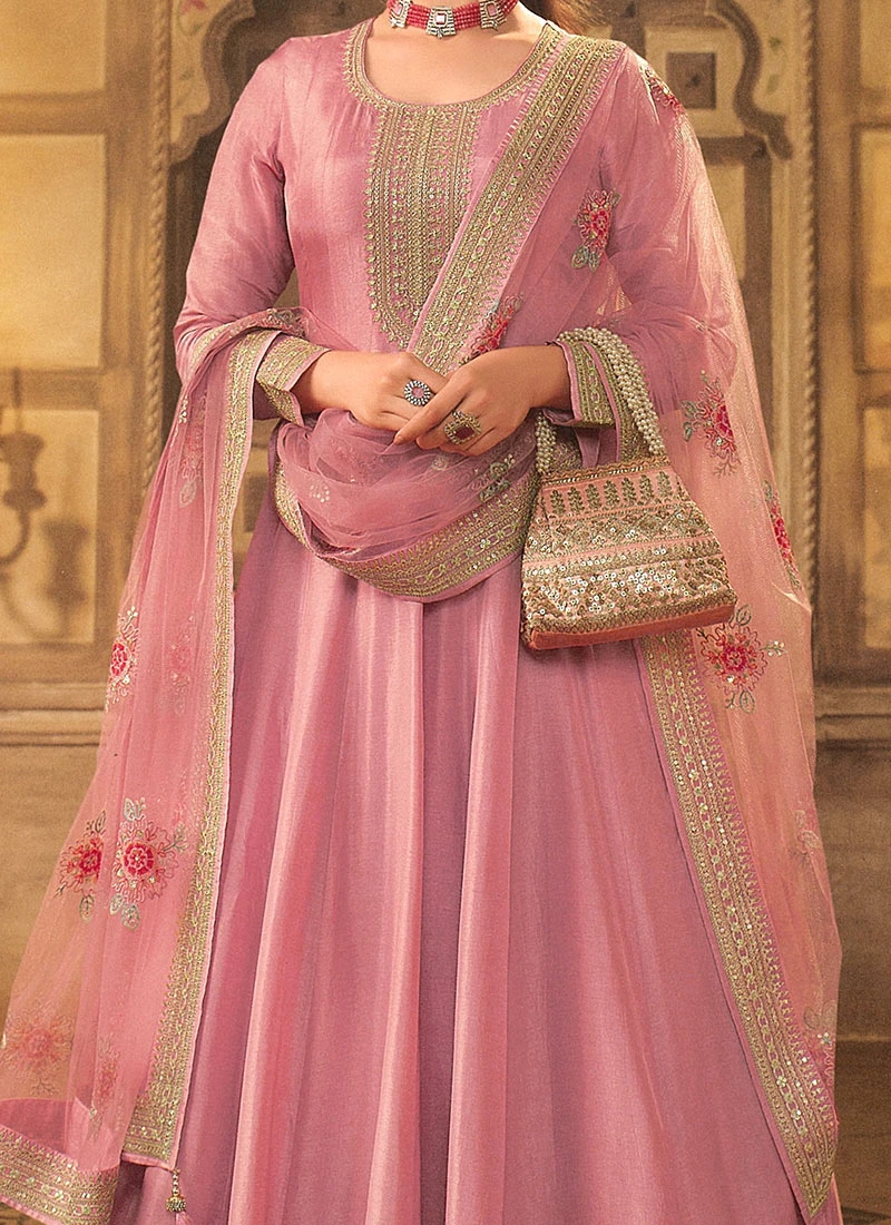 Prachi Desai Pink Dola Silk Embroidered Anarkali Suit Party Wear