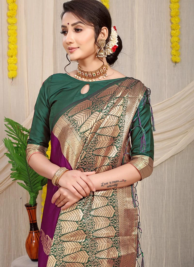 Purple Color Soft Patola Silk Zari Weaving Work Saree Party Wear