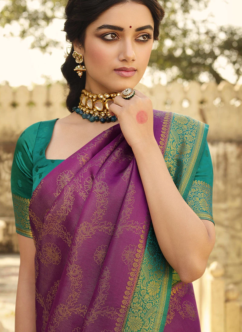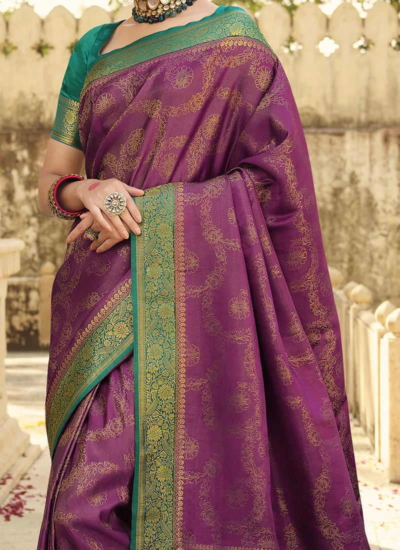 Purple Katan Silk Weaving Work Saree Festive Wear