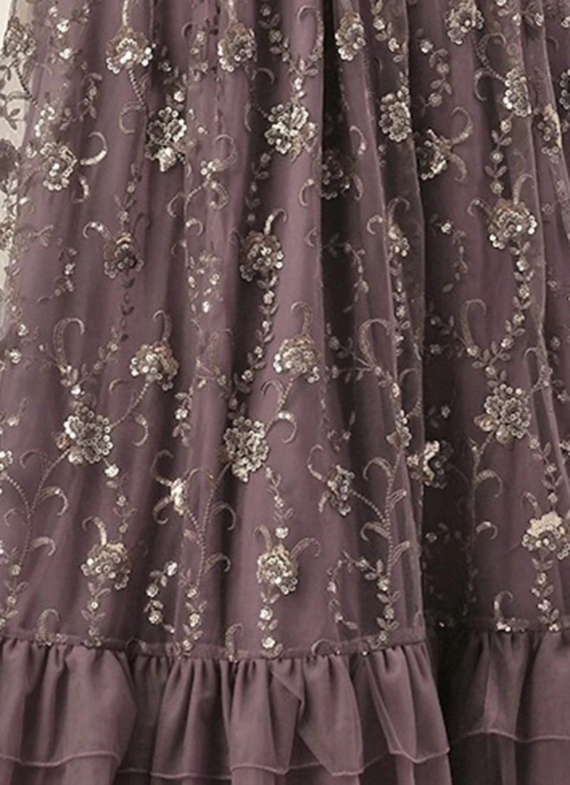 Purple Net Sequins Embroidered Layered Style Gown Wedding Wear