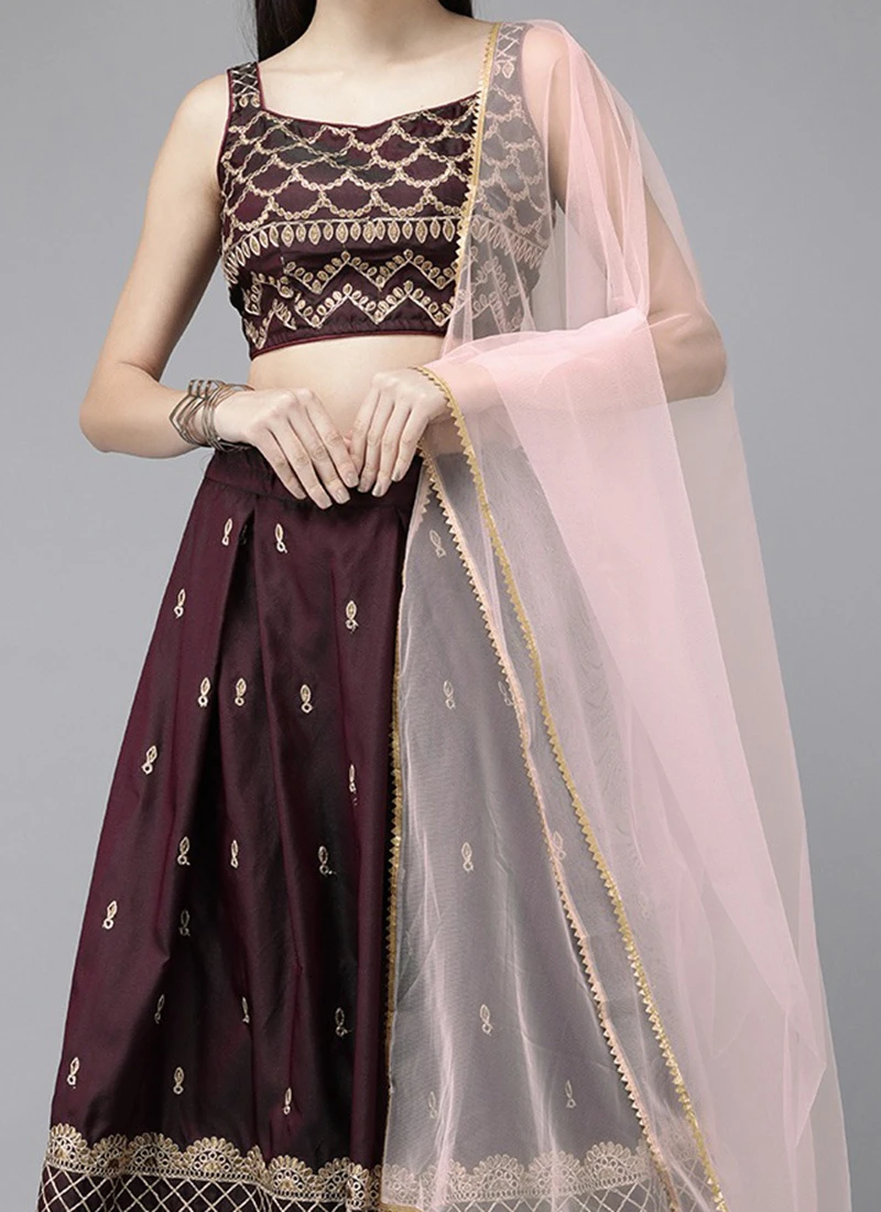 This Purple Satin Blend Zari A Line Lehenga is a timeless piece that will make you the centre of attention at any event. Its combination of traditional craftsmanship rich color and contemporary design elements makes it a standout choice for those who appreciate the artistry of Indian fashion. Whether youre a bridetobe or a guest at a grand celebration this lehenga will ensure you make a lasting impression and create unforgettable memories. Its a fusion of tradition and modernity making it a versatile and cherished addition to any wardrobe. Elevate your style and embrace the beauty of Indian culture with this exquisite lehenga.