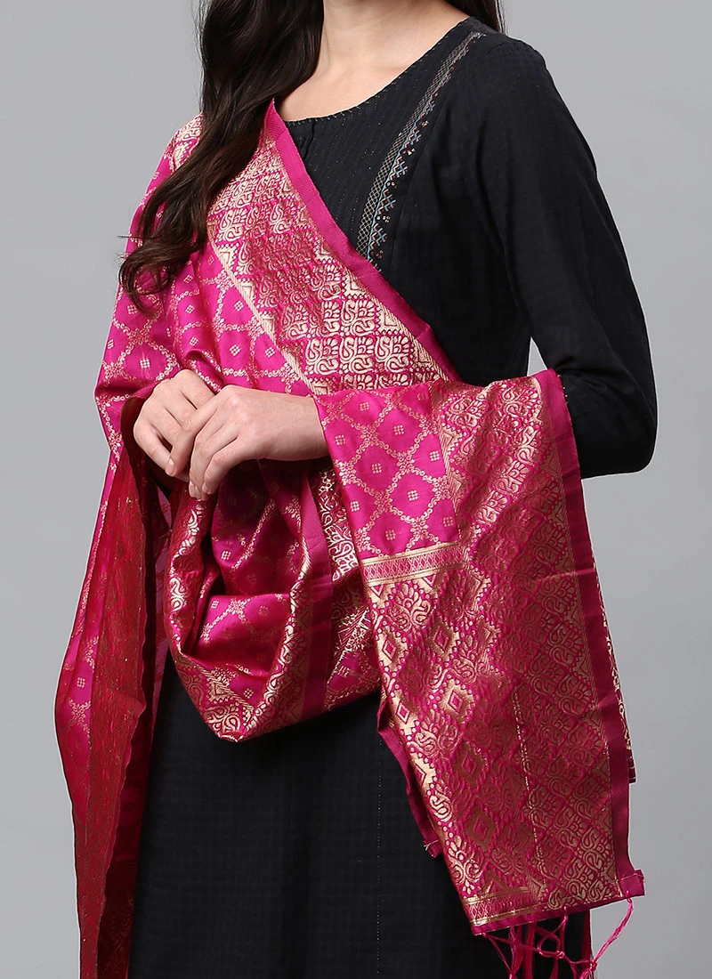 Rani Pink Benarasi Silk Jacquard Woven Dupatta Festive Wear