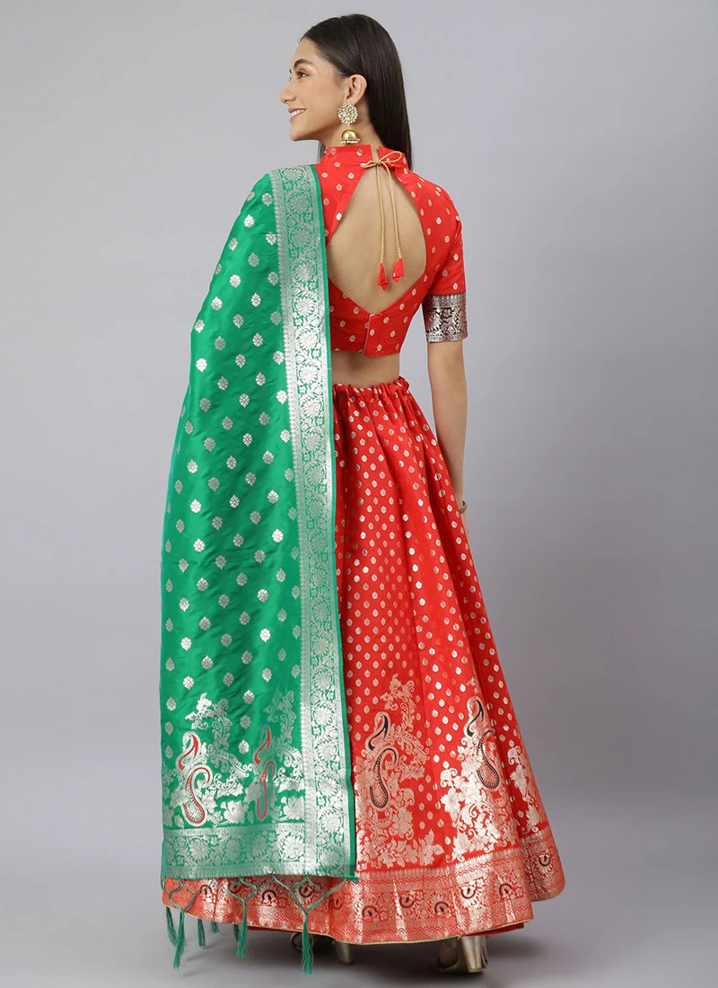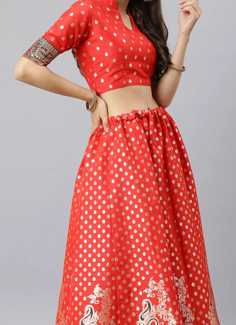 This product consists of unstitched blouse, lehenga and dupatta fabric. This can be stitched using the custom tailoring options below. To buy semi-stitched fabric, just choose the unstitched option.