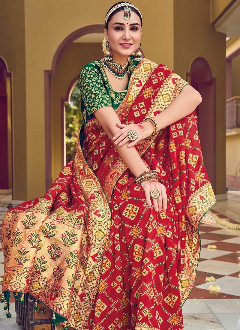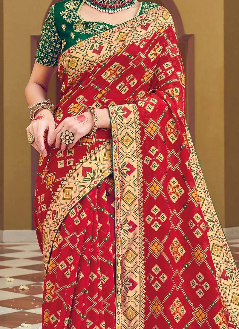 Red Georgette Embroidery Sequins Saree Wedding Wear