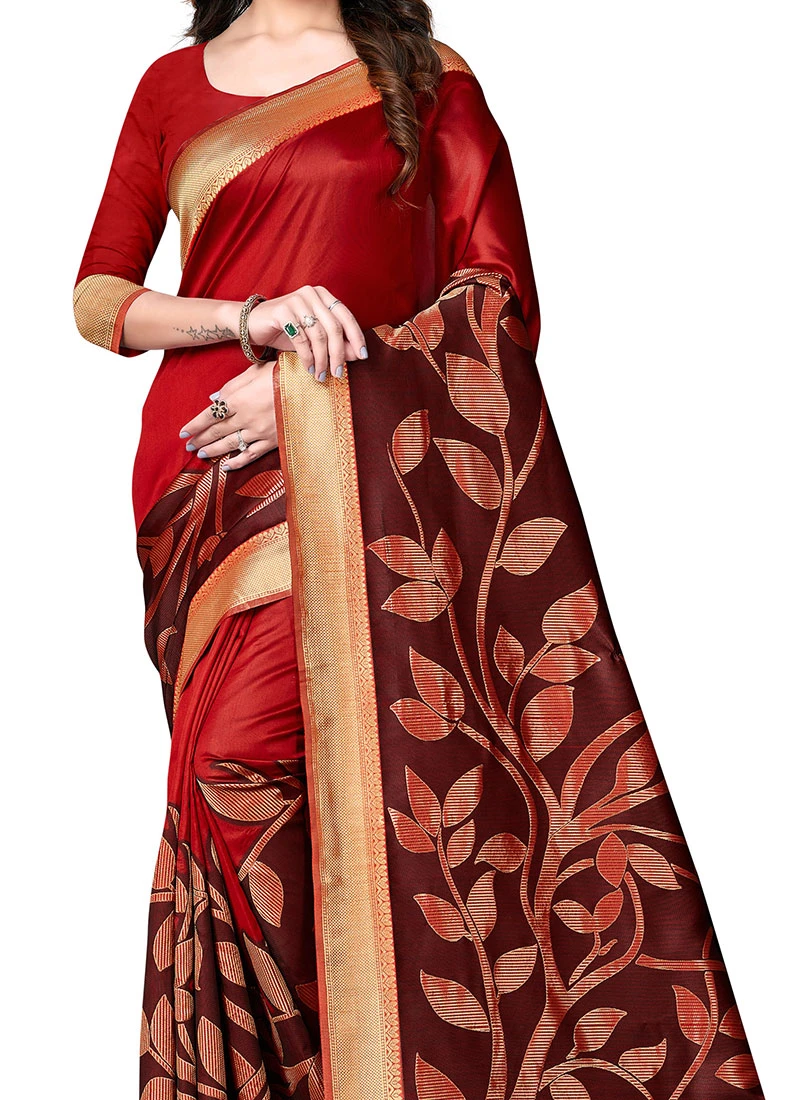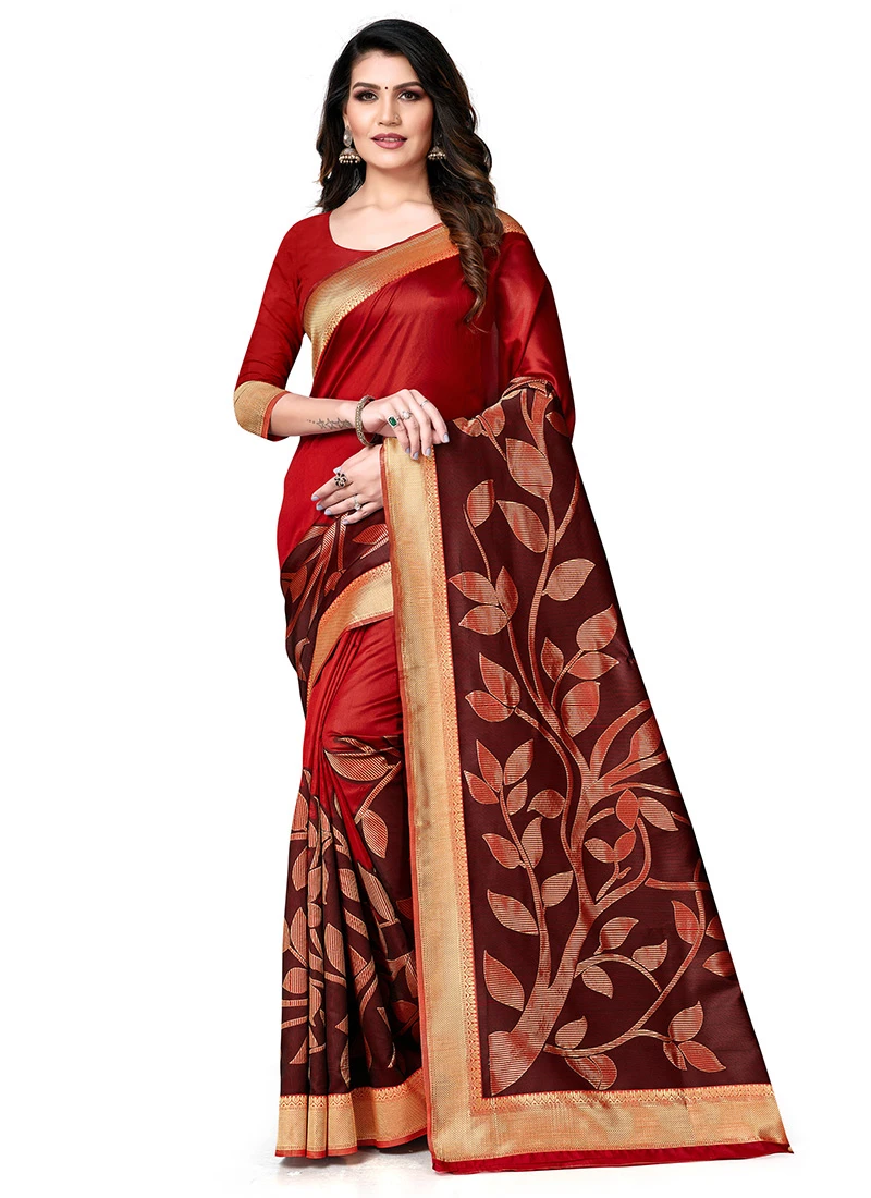 Comes with unstitched blouse fabric. To have the blouse stitched, please select the custom tailoring options. Blouses with elaborate patterns and colors are used for photo-shoot. Color and pattern of the blouse might not be as shown in the image.