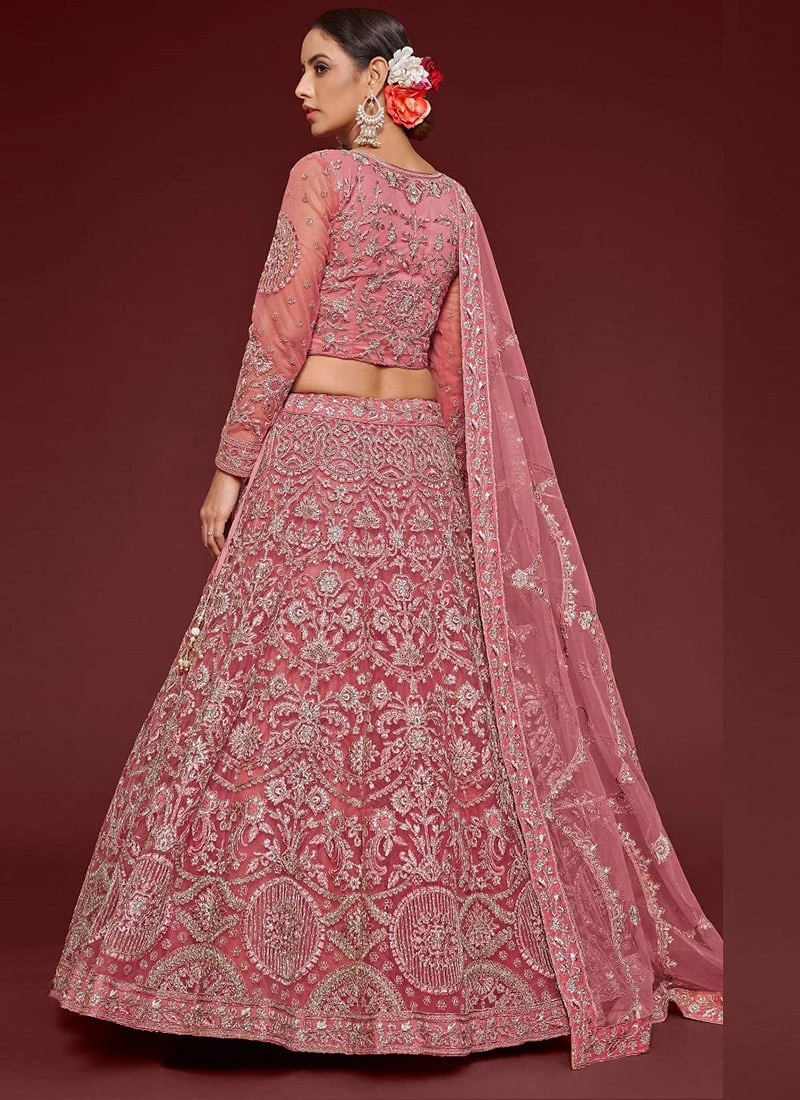 Rose Gold Net Embroidered Work Umbrella Lehenga Choli Party Wear
