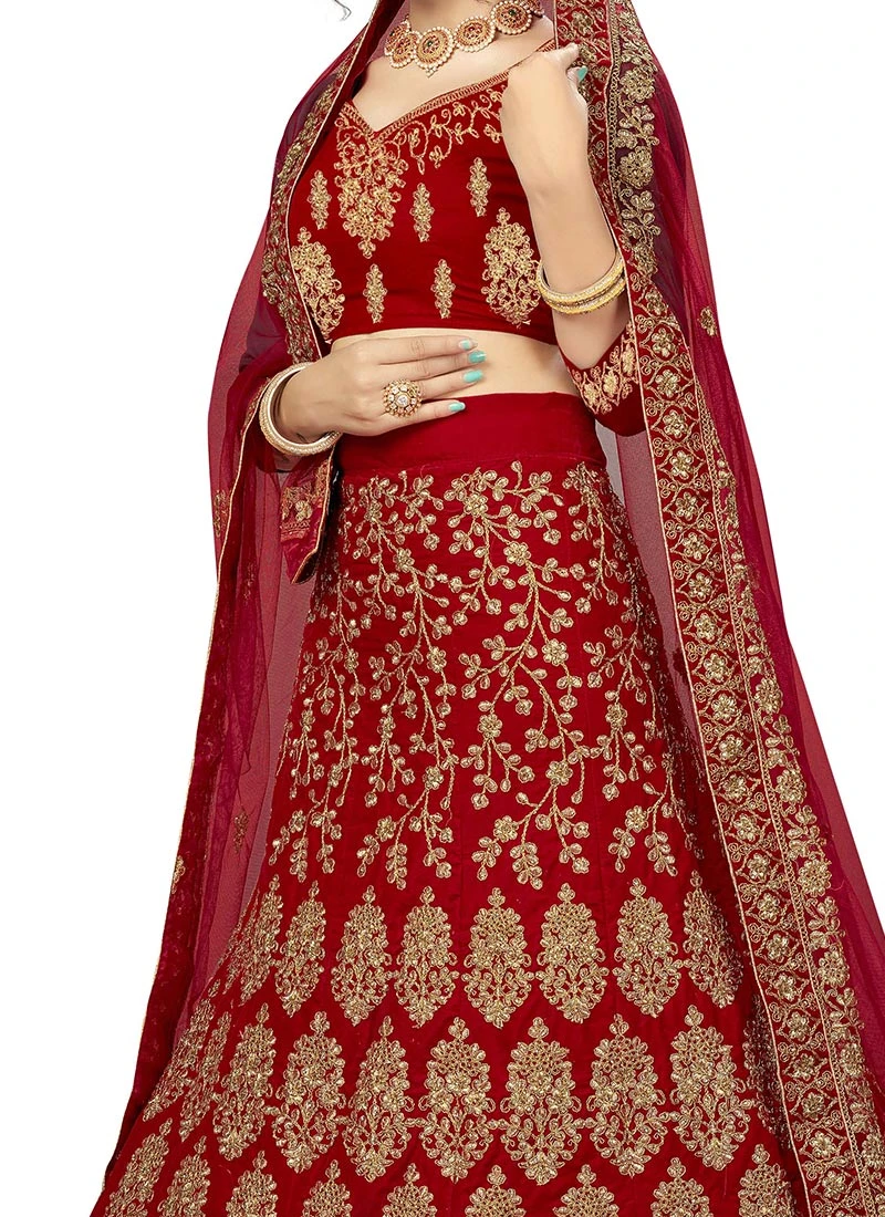 Ruby Maroon Velvet Embroidered A Line Lehenga Party Wear