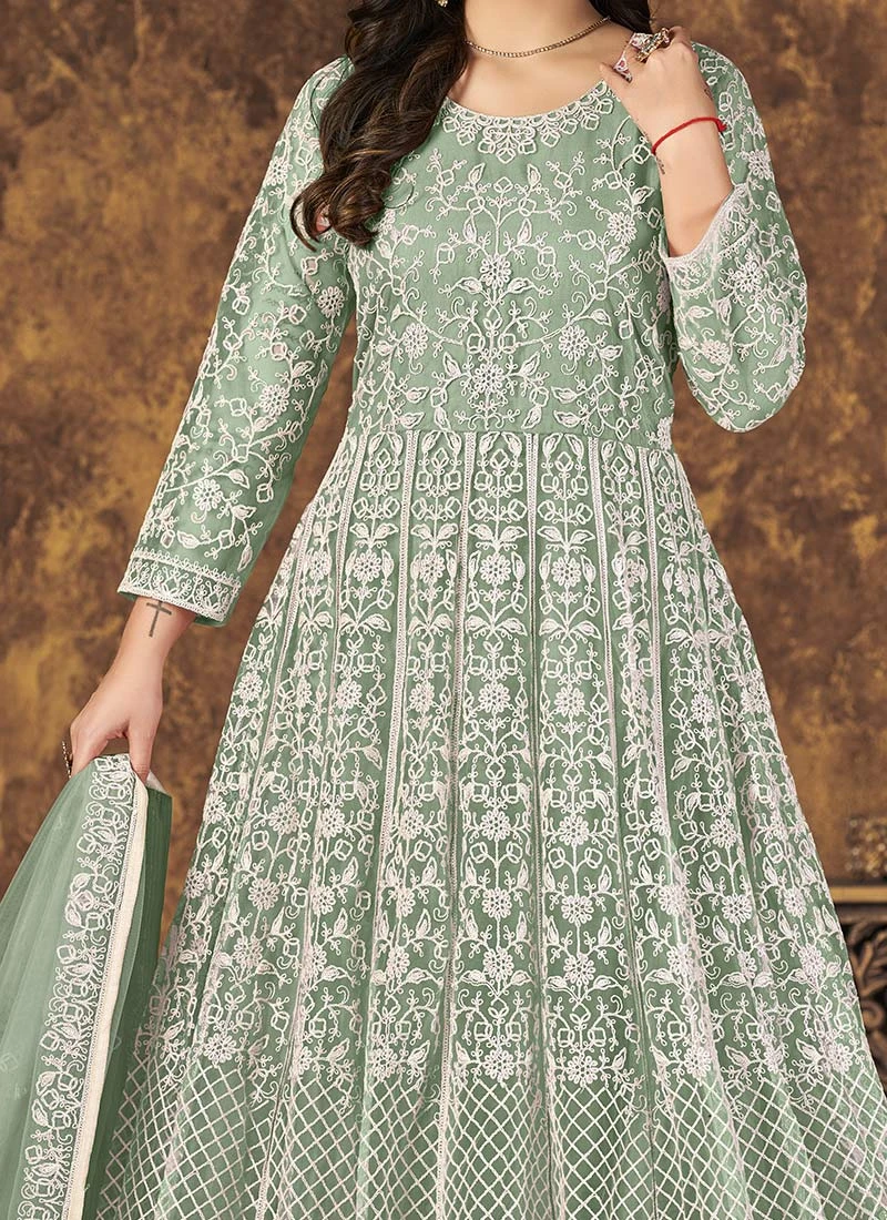 Sea Green Net Embroidery Anarkali Suit Party Wear